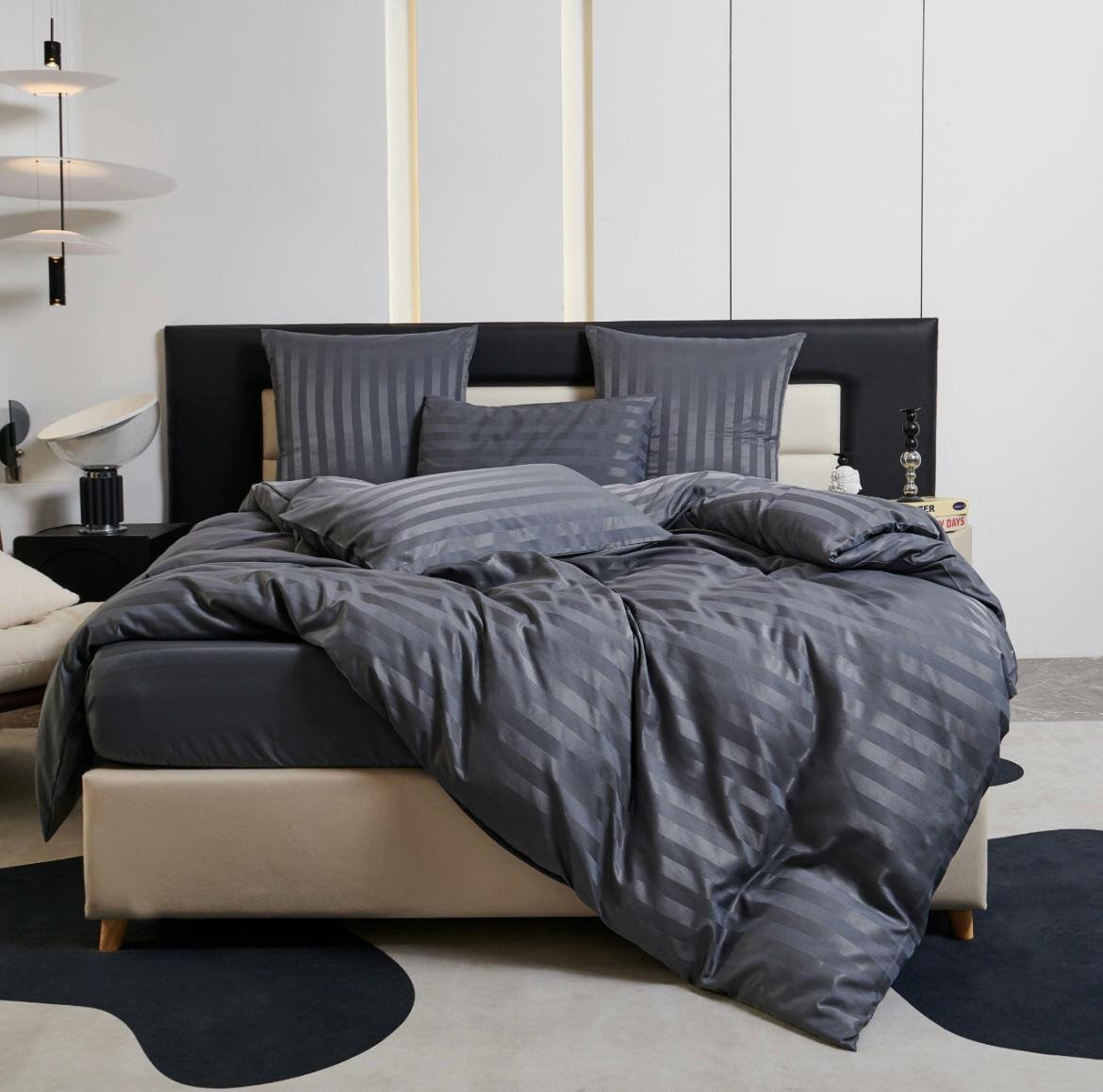 Постельное белье евростандарт 2 спальное/ евро/ темно-серый Winni Mency страйп сатин, простынь 215x230 3 623 ₽