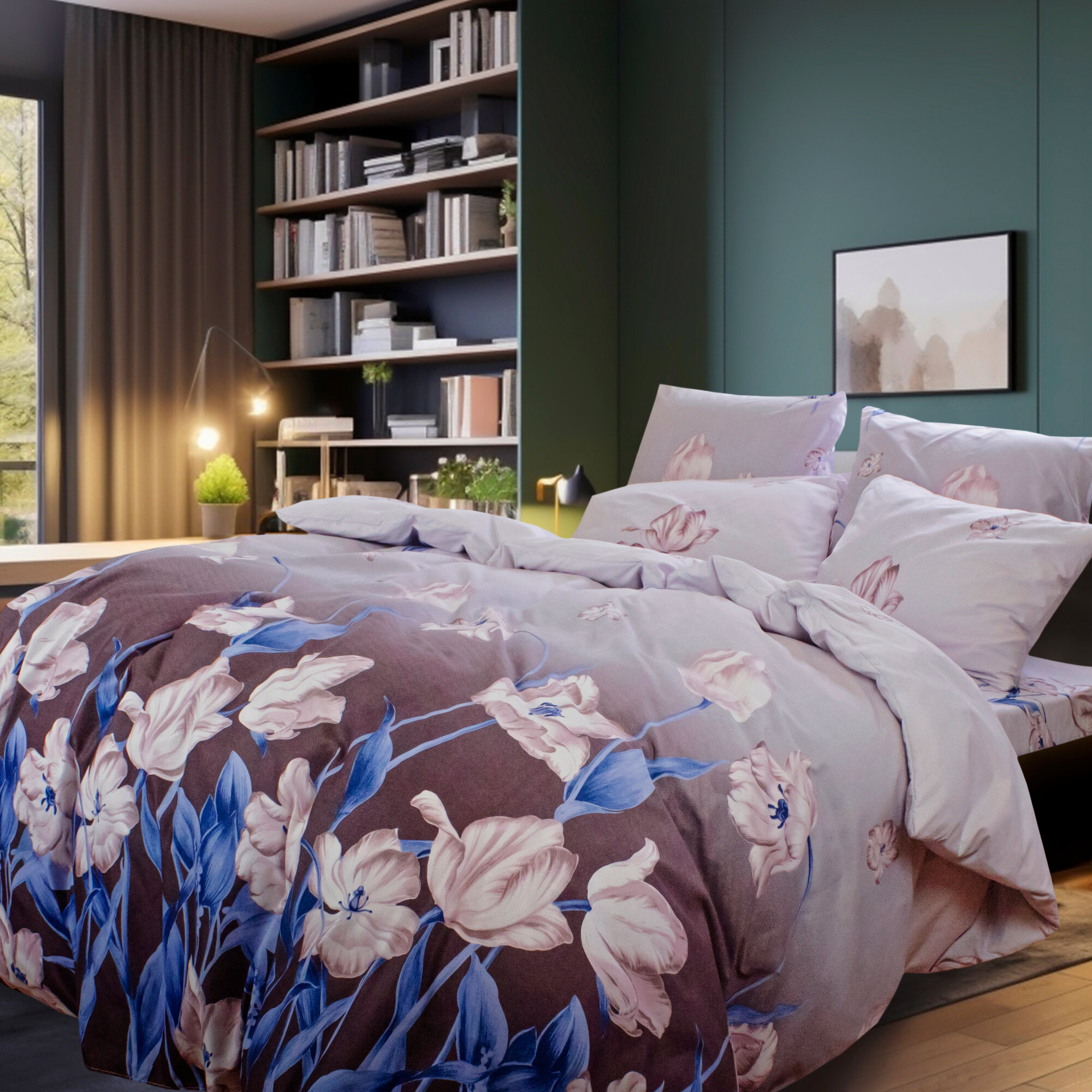 Постельное белье евро с цветочным принтом Cleo Art Color, комплект из полисатина, наволочки 50х70 и 70х70 2 297 ₽