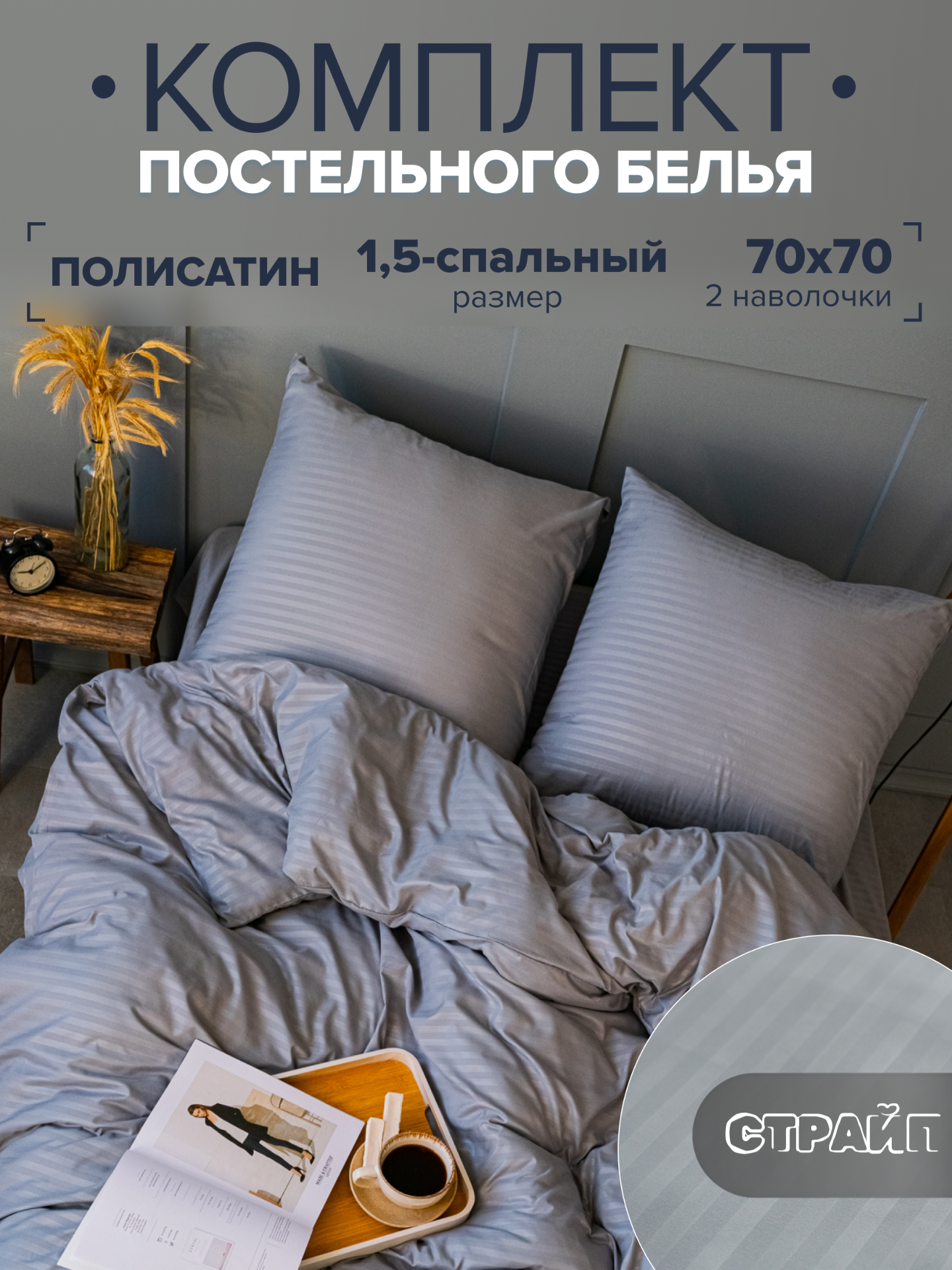 Постельное белье 1.5 спальное IDEASON Полисатин Страйп (серый) информация: