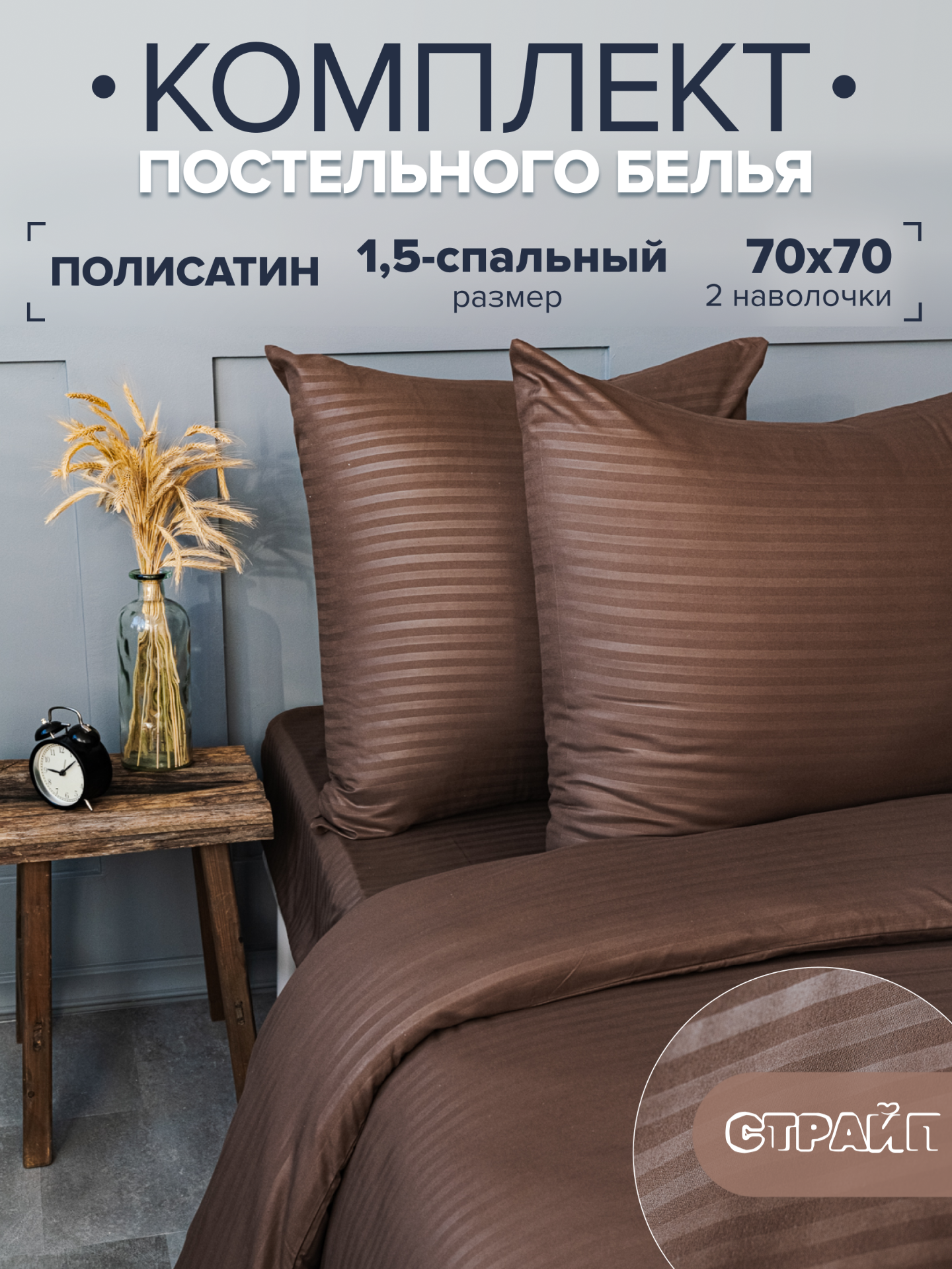 Постельное белье 1.5 спальное IDEASON Полисатин Страйп (шоколад) информация: