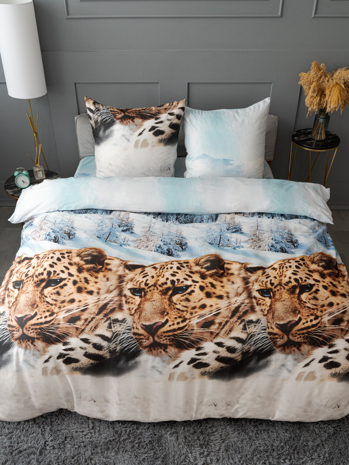 Постельное белье евро макси Павлина Леопард зима, Полисатин, наволочки 70x70 1 535 ₽
