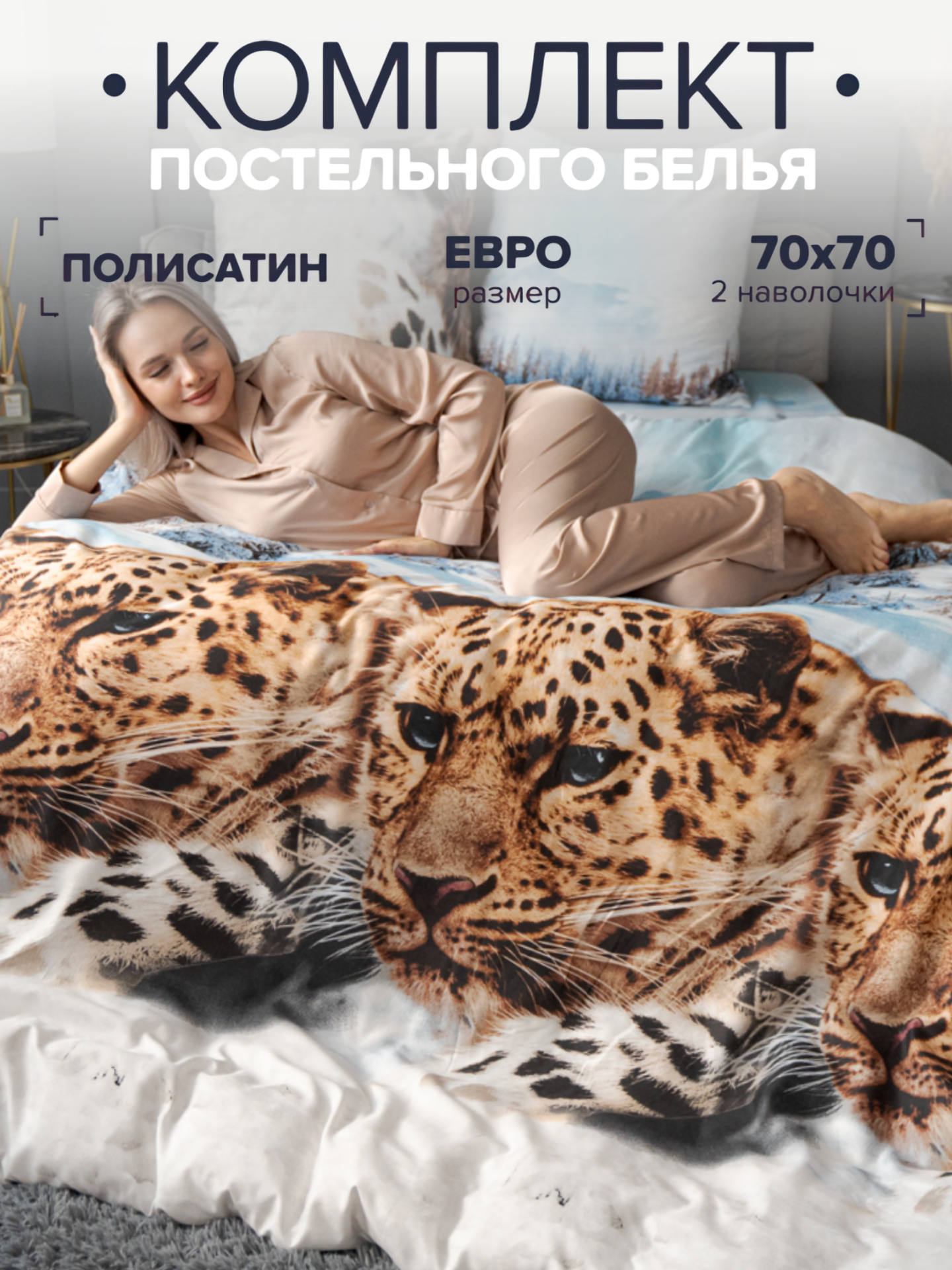 Отзывы на Постельное белье евро Павлина Леопард зима, Полисатин, наволочки 70x70