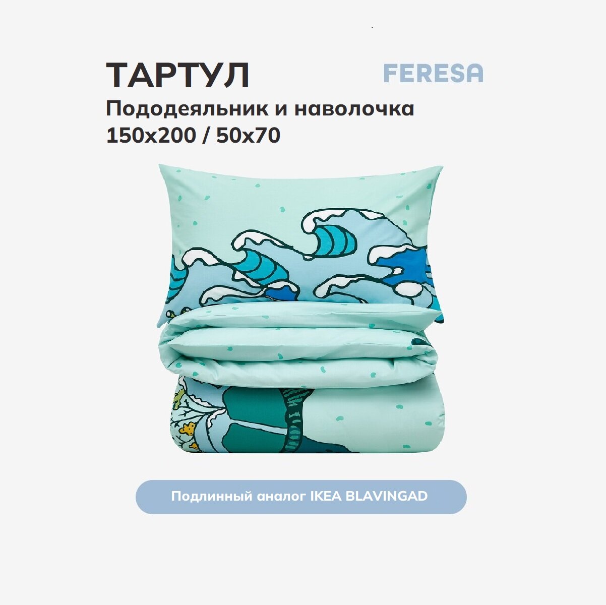 Постельное белье 1,5 спальное поплин Feresa Hygge роббинс/RÖRANDE, пододеяльник 150х200, наволочка 50x70 (1 шт), аналог икеа 2 261 ₽