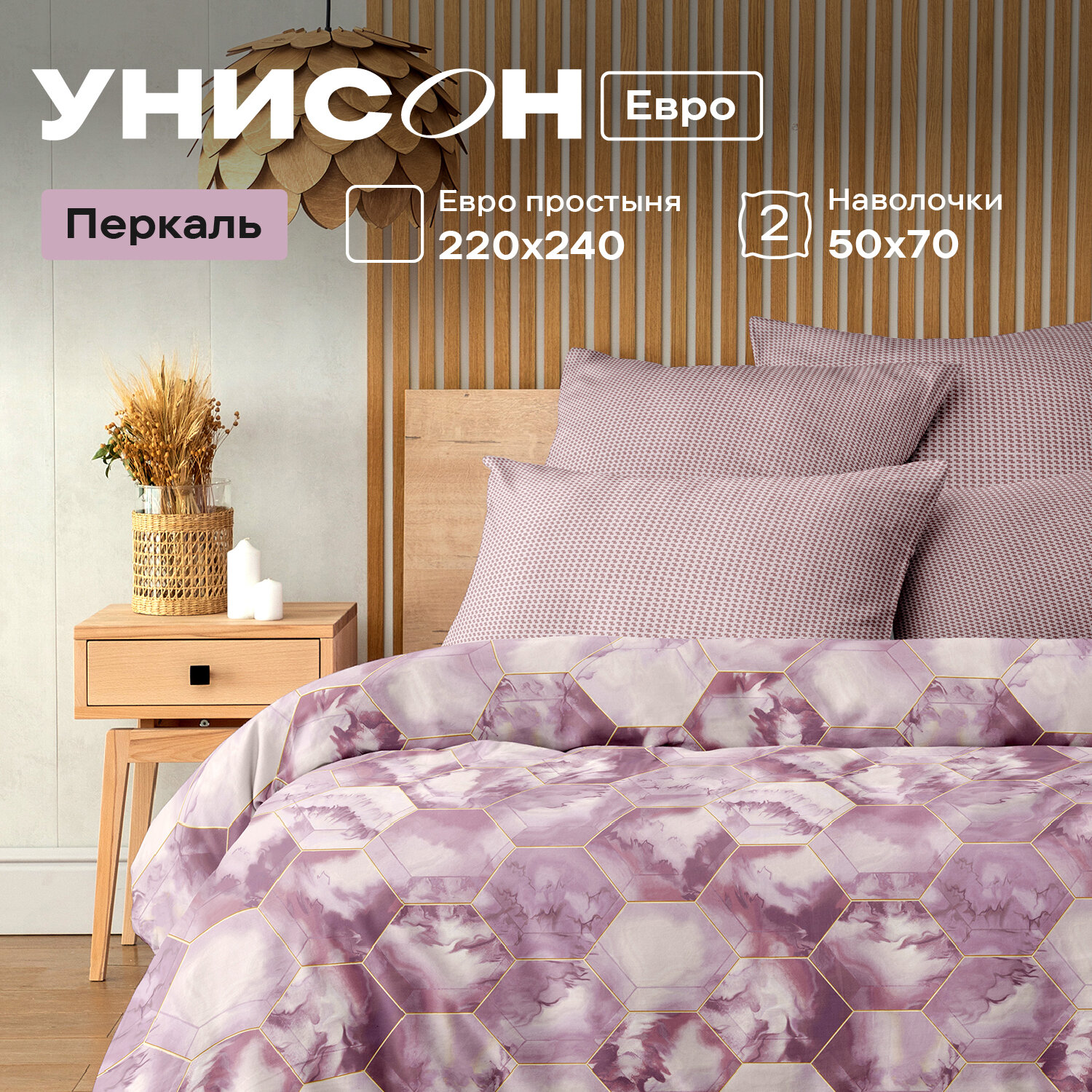Постельное белье Евро Унисон, Перкаль, нав. 50х70, Mariolla информация: