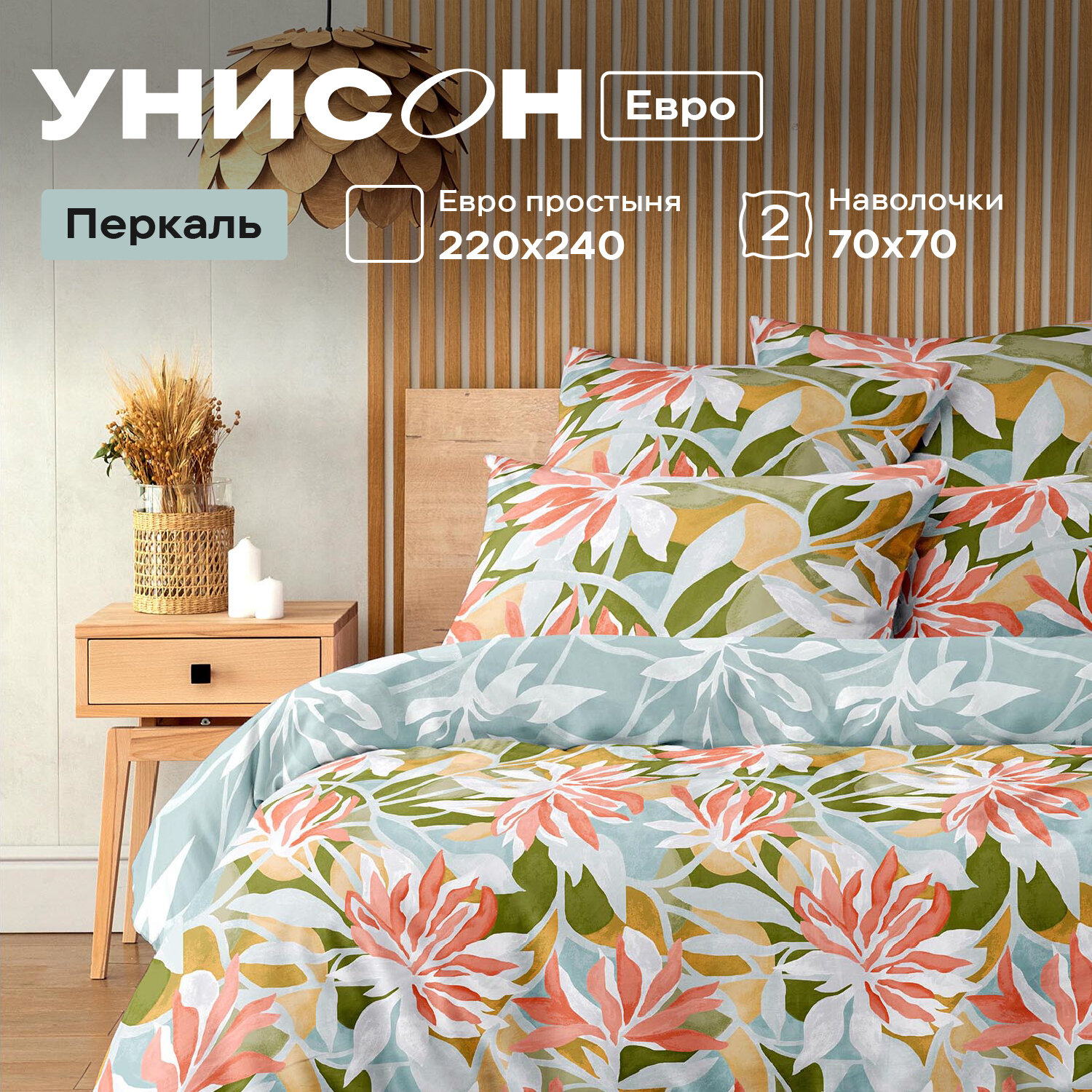 Постельное белье Евро Унисон, Перкаль, нав. 70х70, Monique информация: