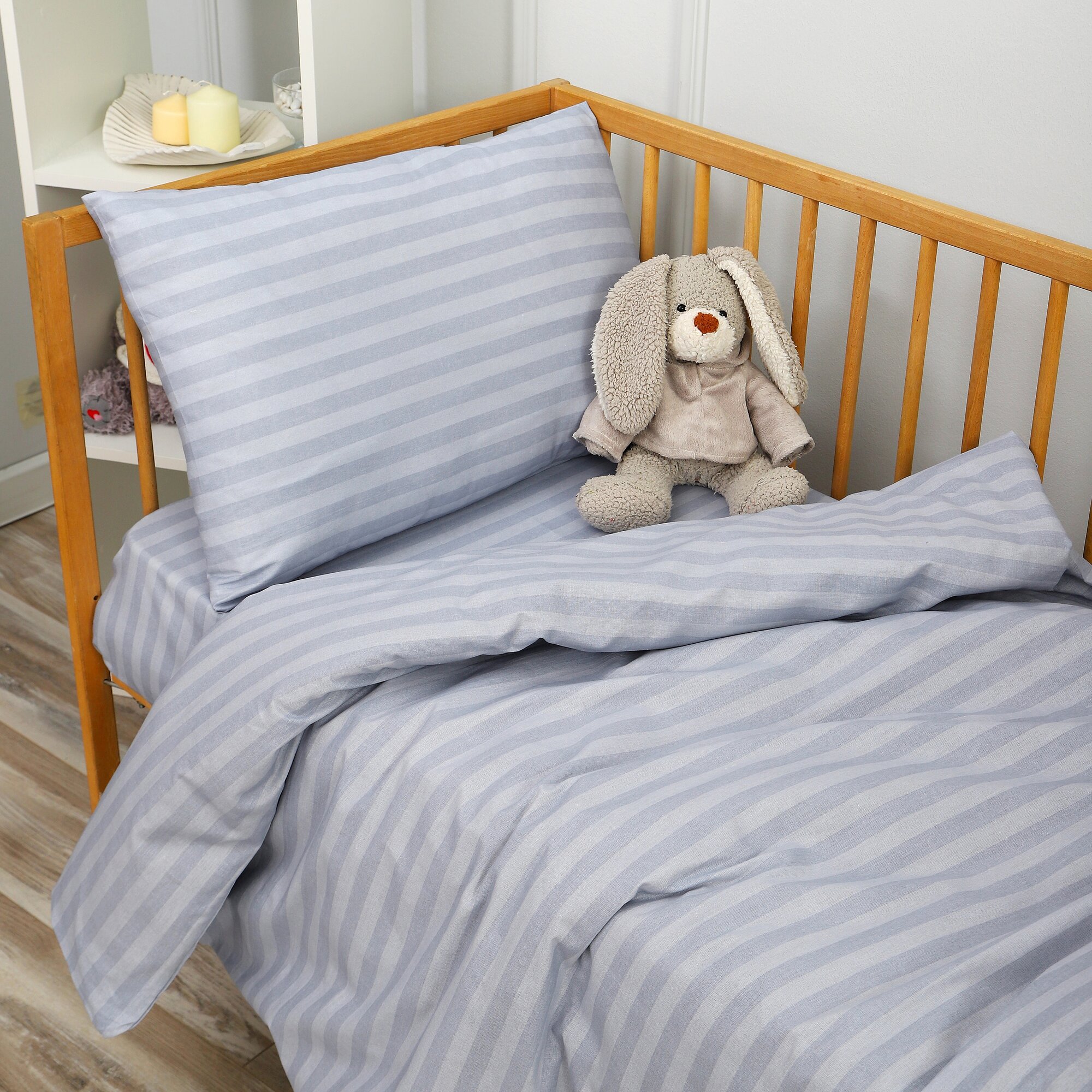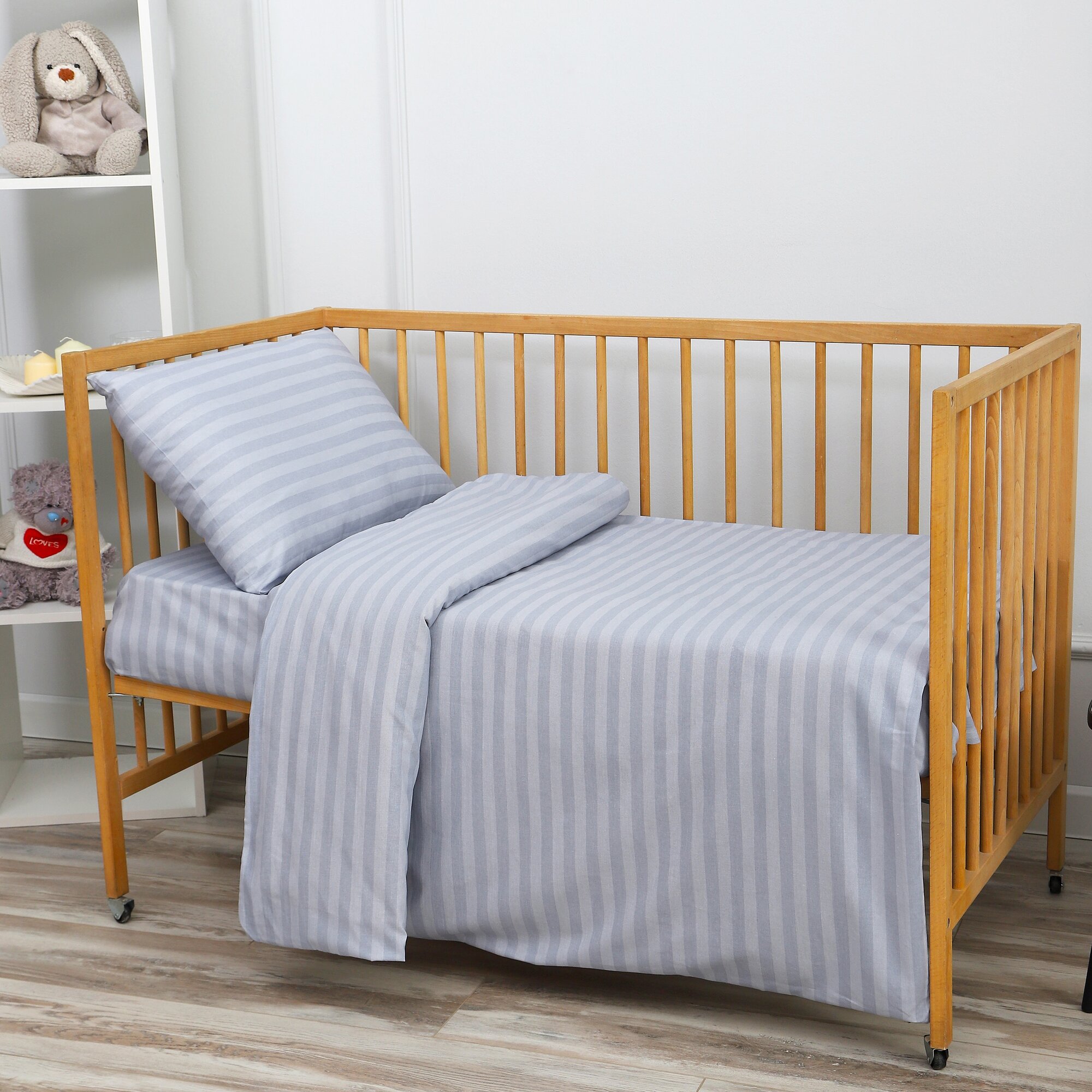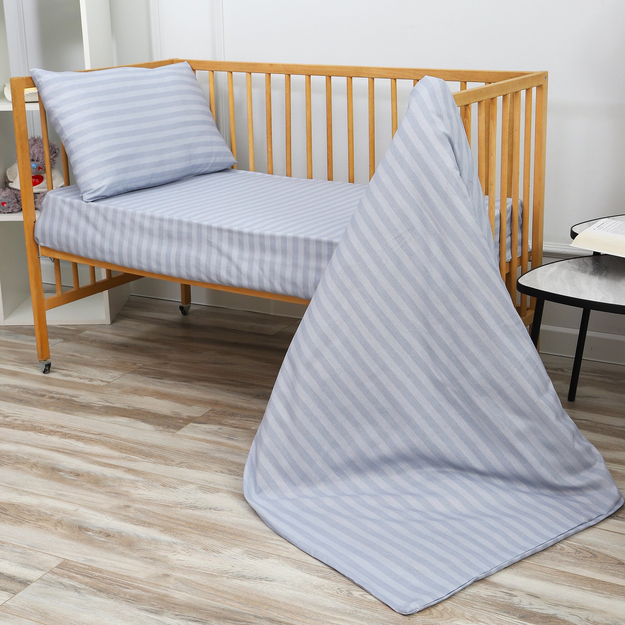 Комплект детского постельного белья "Страйп серебристо-серый" из бязи (100 % хлопок) информация: