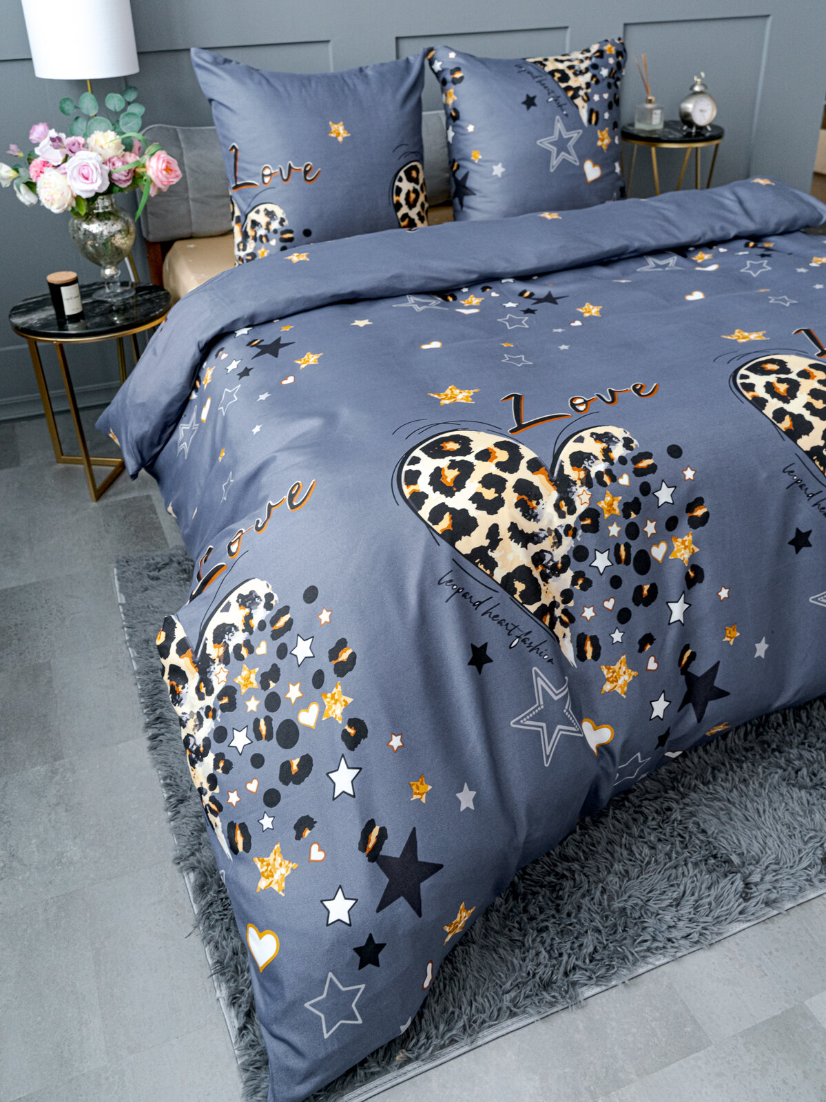 Постельное белье 2 спальное Павлина 0540 Лето (Love графит), Полисатин, наволочки 70x70 информация: