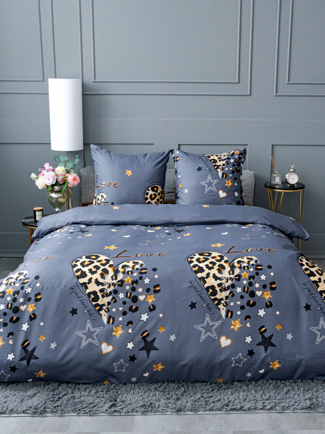 10 цен на Постельное белье 2 спальное Павлина 0540 Лето (Love графит), Полисатин, наволочки 70x70