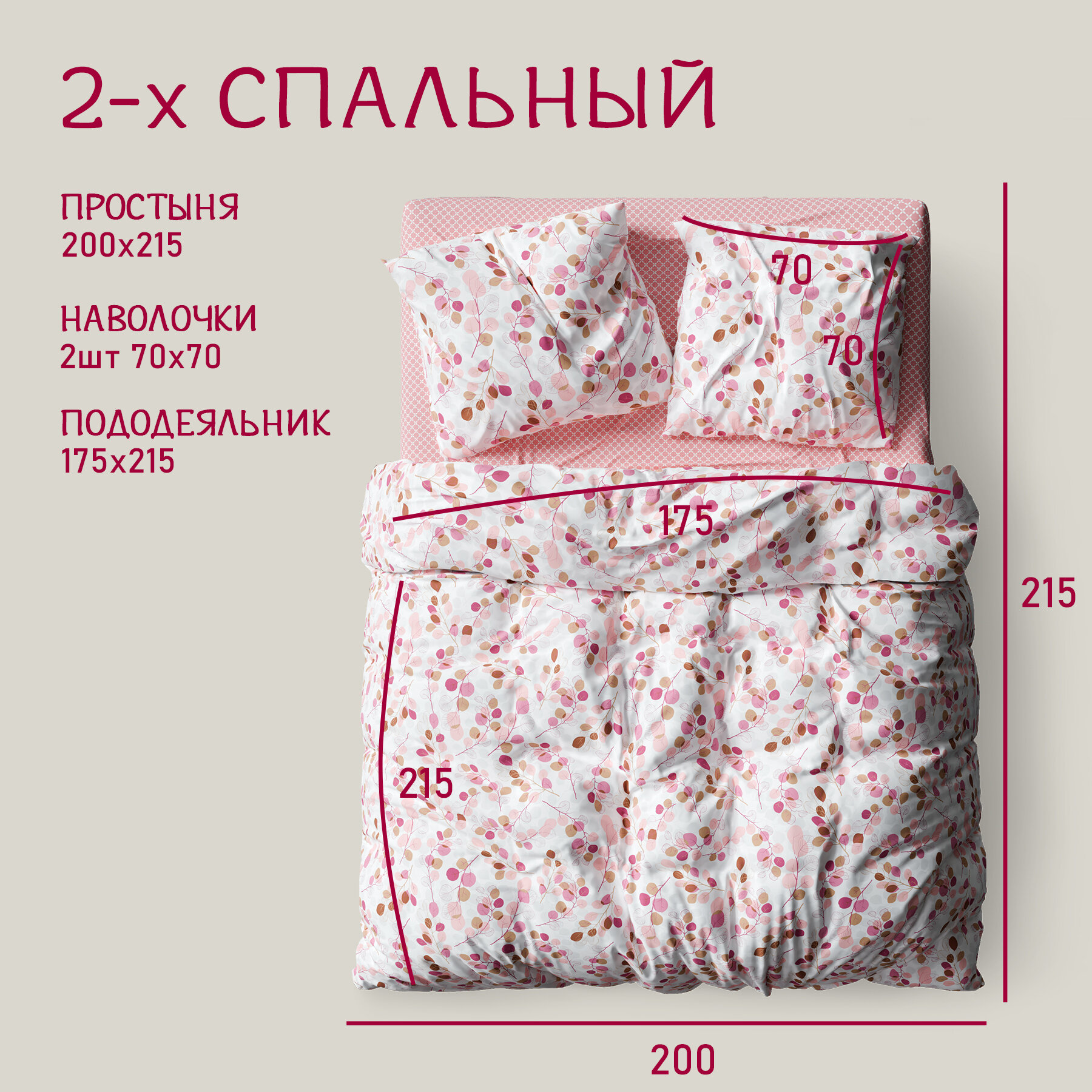 Постельное белье 1,5-спальное Galtex Компаньон Эвкалипт розовый на белом фоне/Вестерн пудровый 1 699 ₽