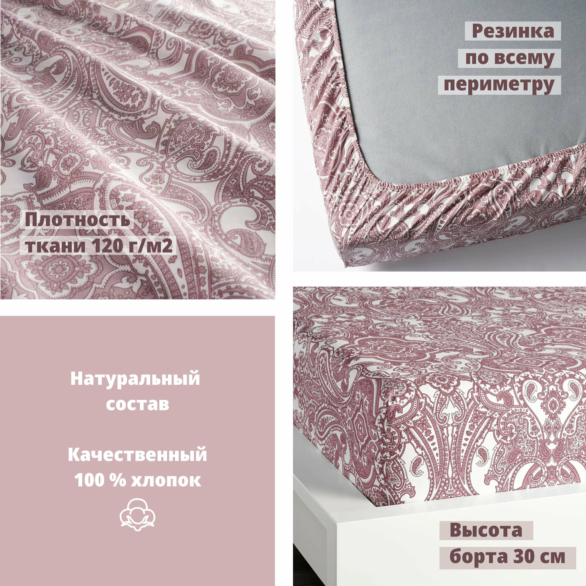 Простынь на резинке натяжная Ambesonne, 90х200 Микросатин аналог икеа