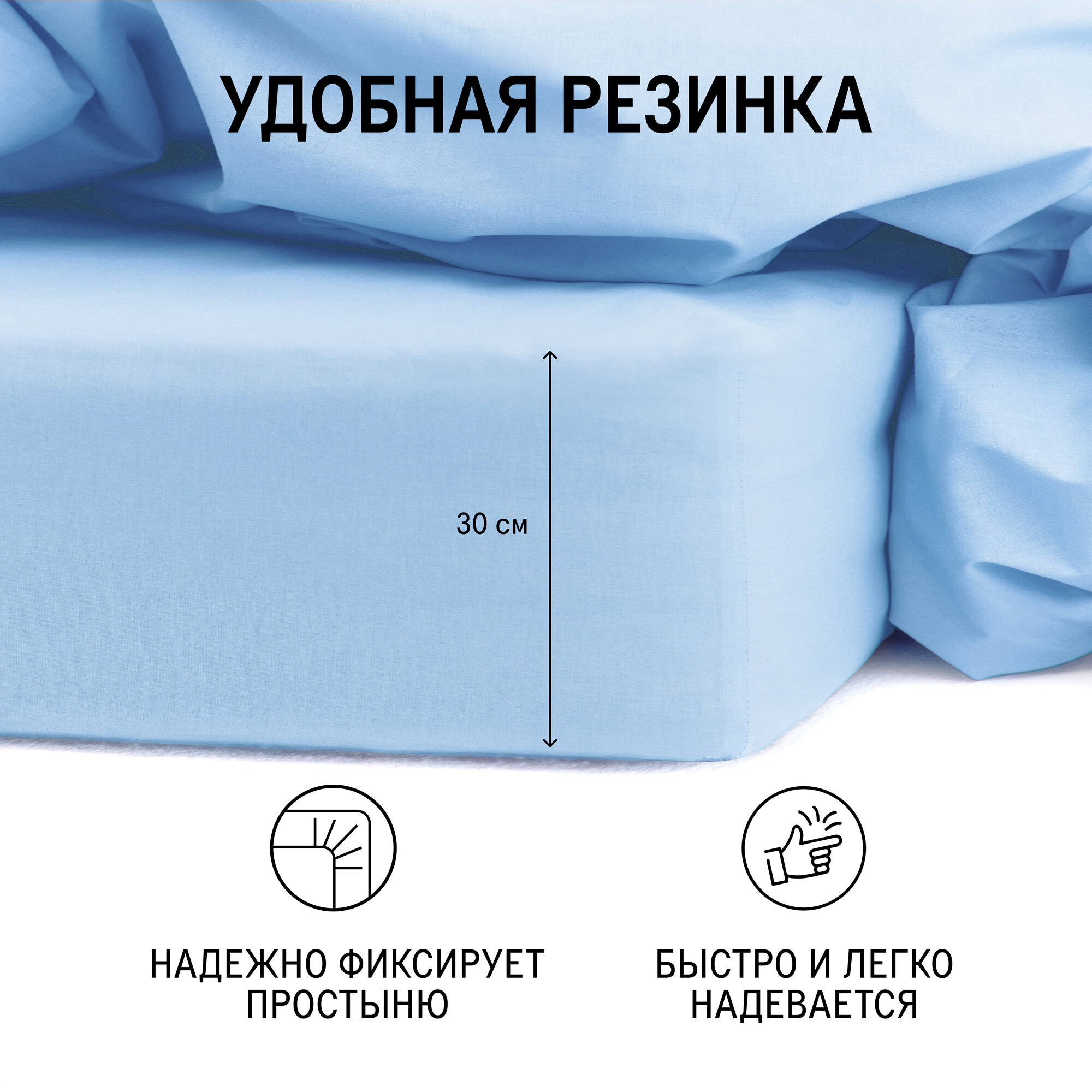 Простыня MORФEUS (морфеус) - Baby Blue (голубой) - 160x200x30 (на резинке) - ранфорс информация: