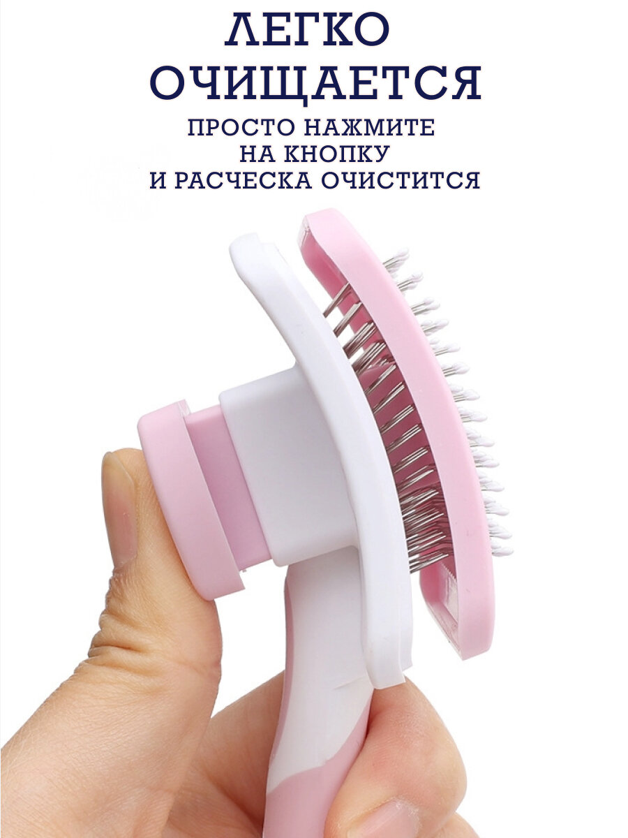 Щетка для вычесывания шерсти (пуходерка) с кнопкой самоочистки.Чесалка для животных. Дешеддер для собак и кошек. Инструмент для вычесывания розовая. 478 ₽