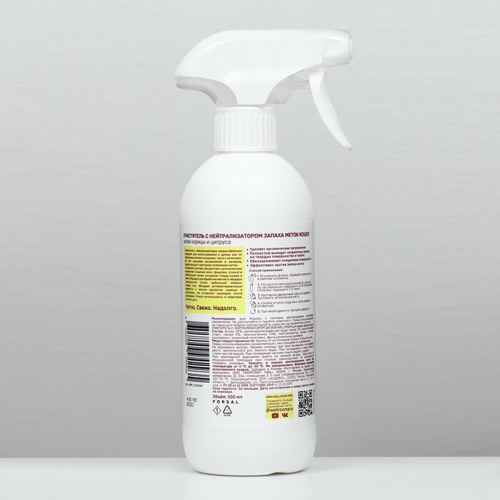 Очиститель с нейтрализатором запаха Wellroom, против меток, кошки, корица/цитрус, 500 мл информация: