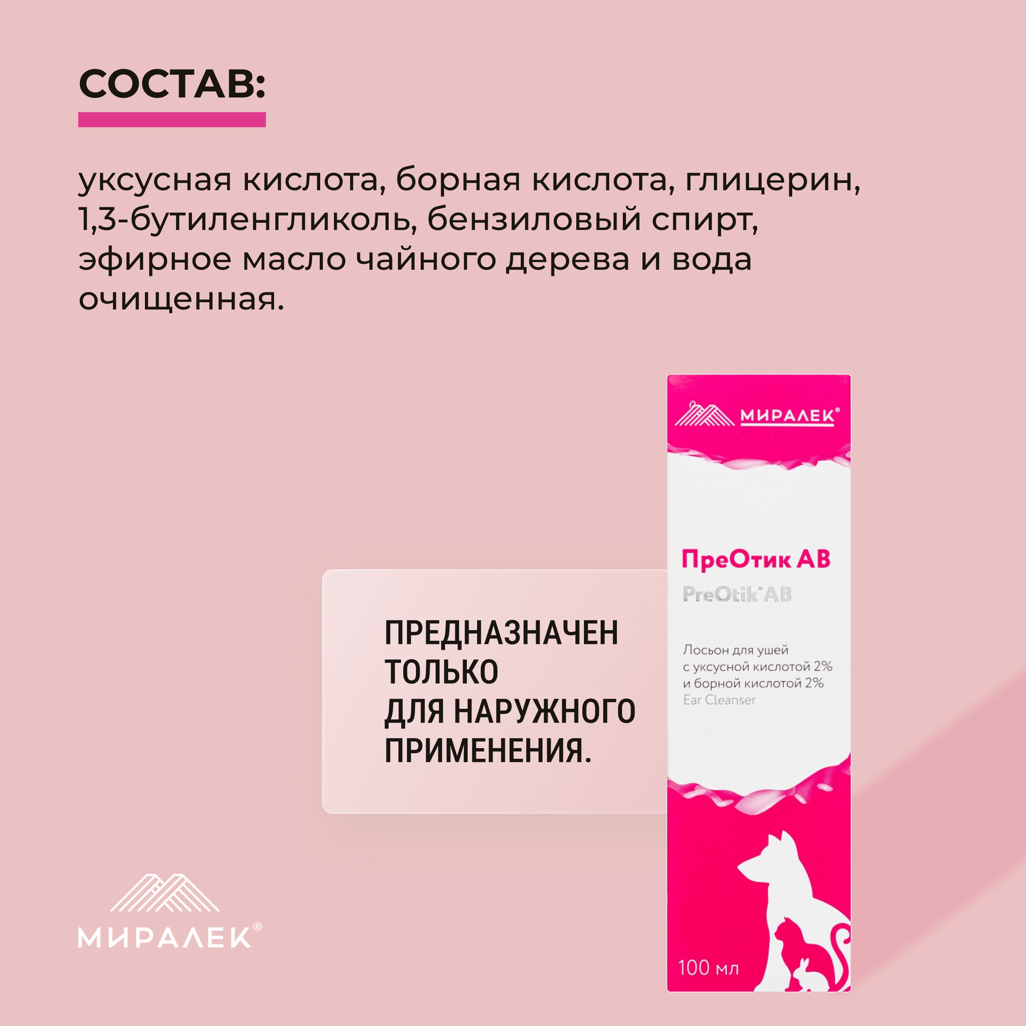 Миралек: Лосьон для ушей, Преотик АВ, уксусная + борная кислота, 100 мл 750 ₽