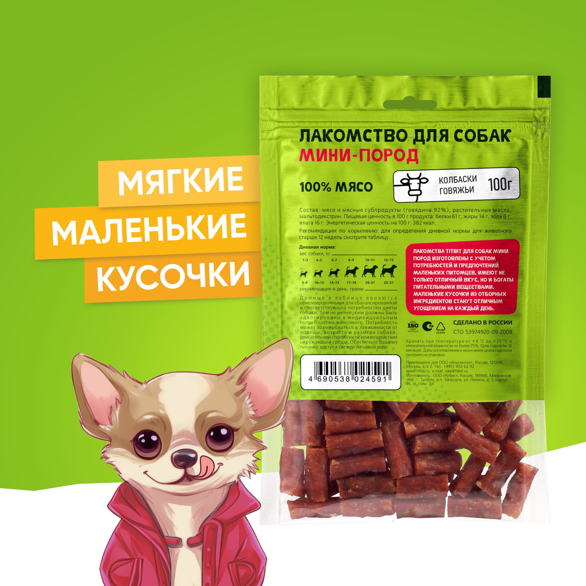 Лакомство для собак мини-пород TiTBiT Колбаски говяжьи 100 г информация: