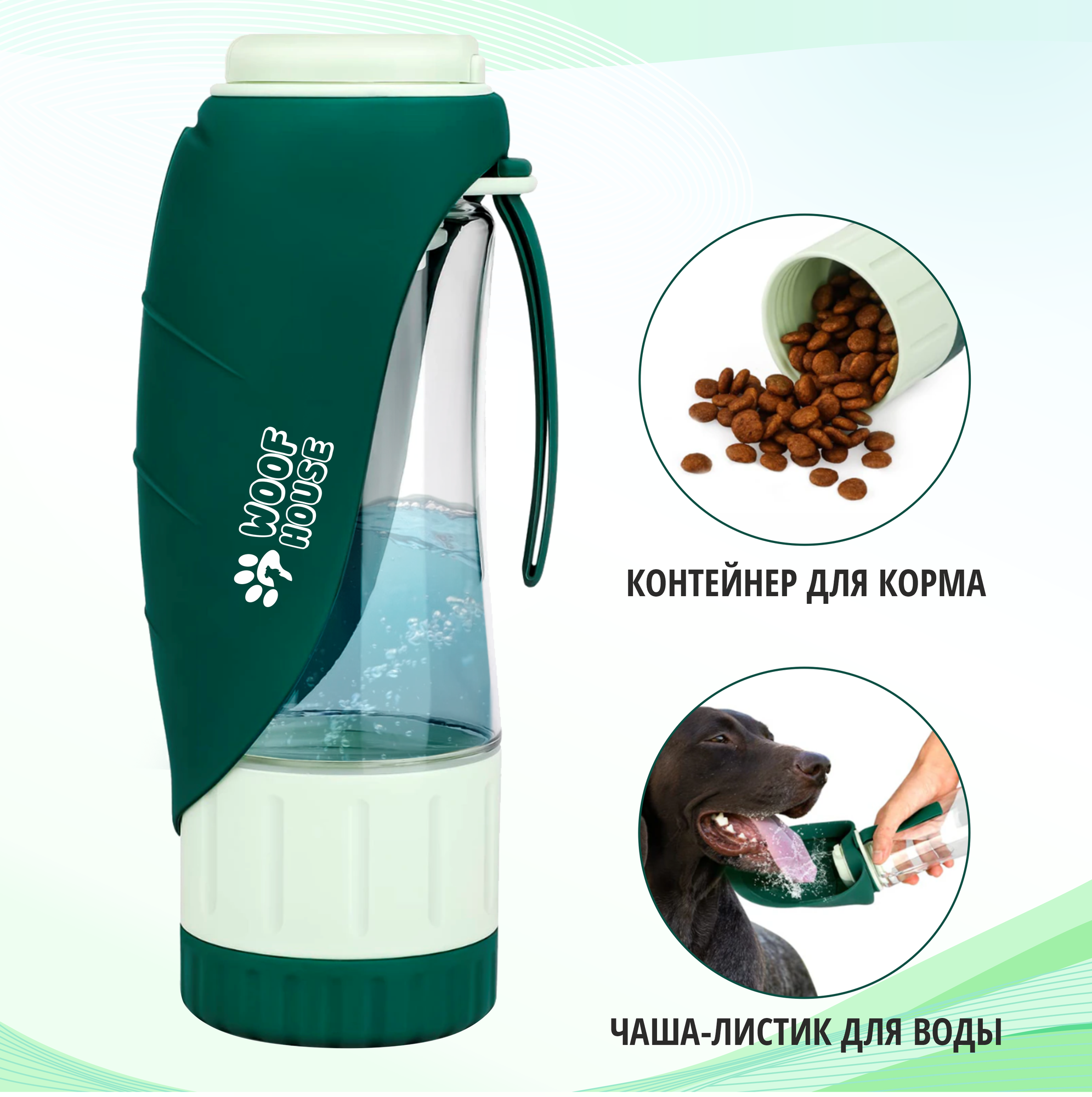 Поилка для собак прогулочная, бутылка дорожная с отделом для корма 0.33 л информация: