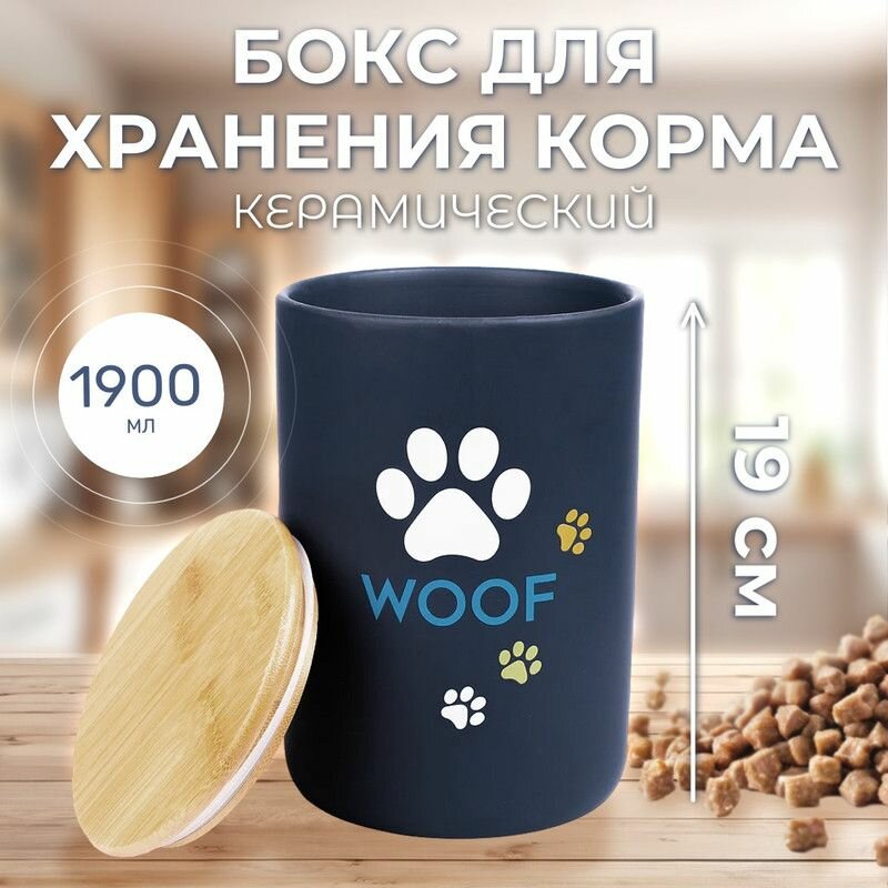 Mr.Kranch WOOF бокс керамический для хранения корма для собак, 1900 мл, черный информация: