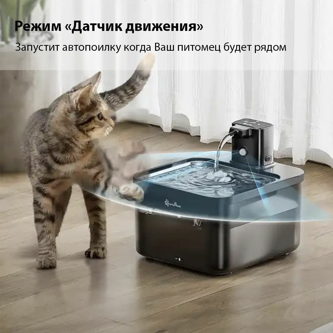 Поилка для кошек беспроводная 2.5L, белая на аккумуляторе 4000 мАч (ПВХ версия) Downy Paws 4 402 ₽