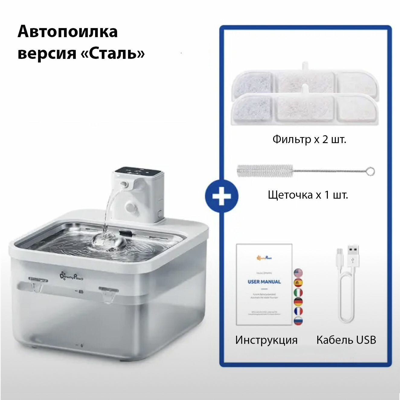 | Подробная комплектация | Поилка пластик, аккумулятор, фильтр 2 шт., инструкция |