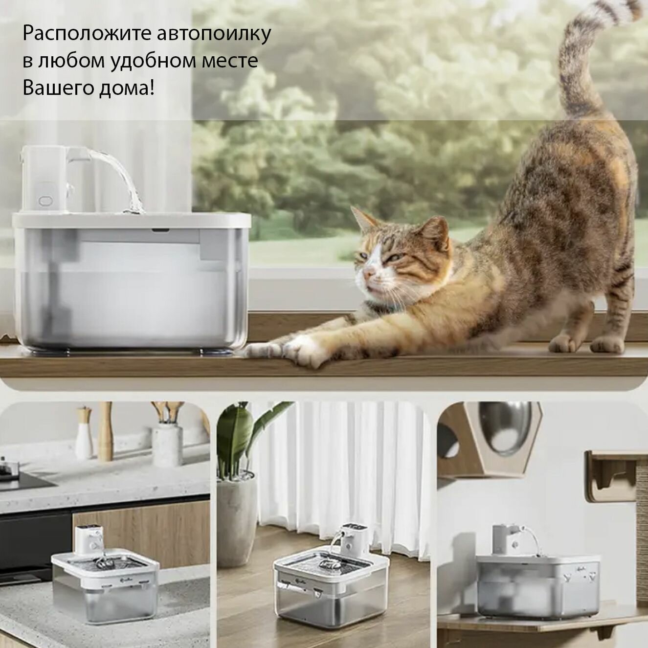 Отзывы на Поилка для кошек беспроводная 2.5L, белая на аккумуляторе 4000 мАч (Стальная версия) Downy Paws