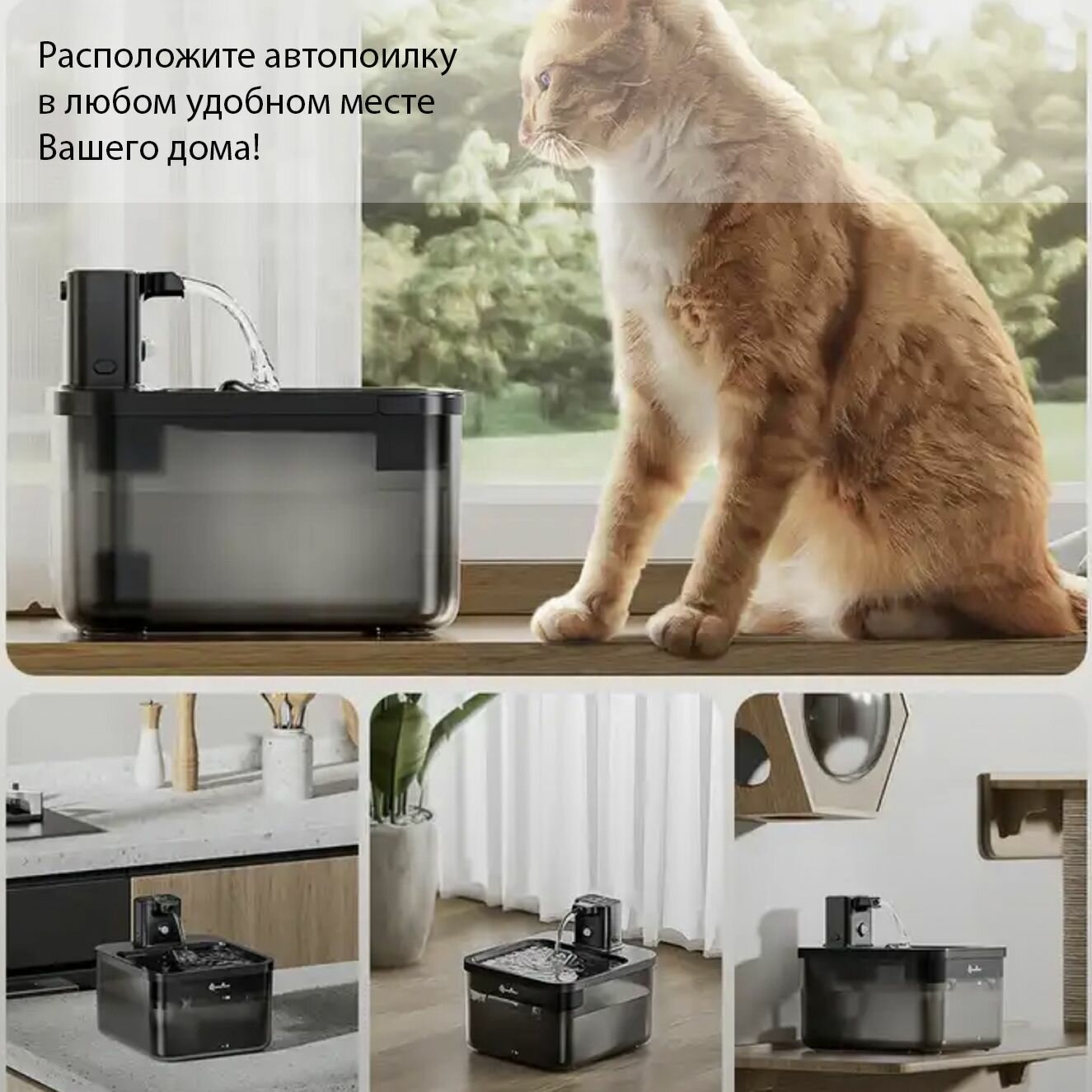 10 цен на Поилка для кошек беспроводная 2.5L, черная на аккумуляторе 4000 мАч (ПВХ версия) Downy Paws