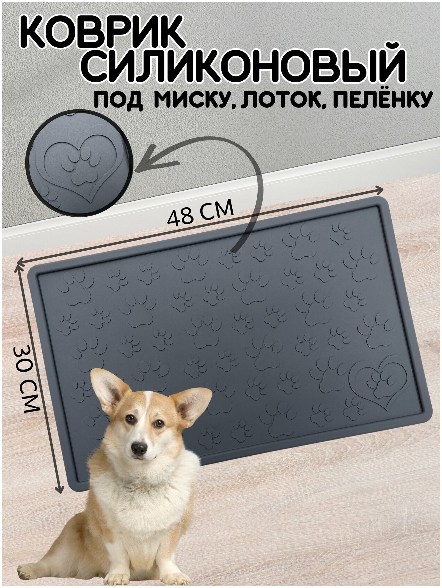10 цен на Коврик под миску для собак и кошек, лоток, поилку, силиконовый, нескользящий с бортиком, 48х30 см, Темно-серый