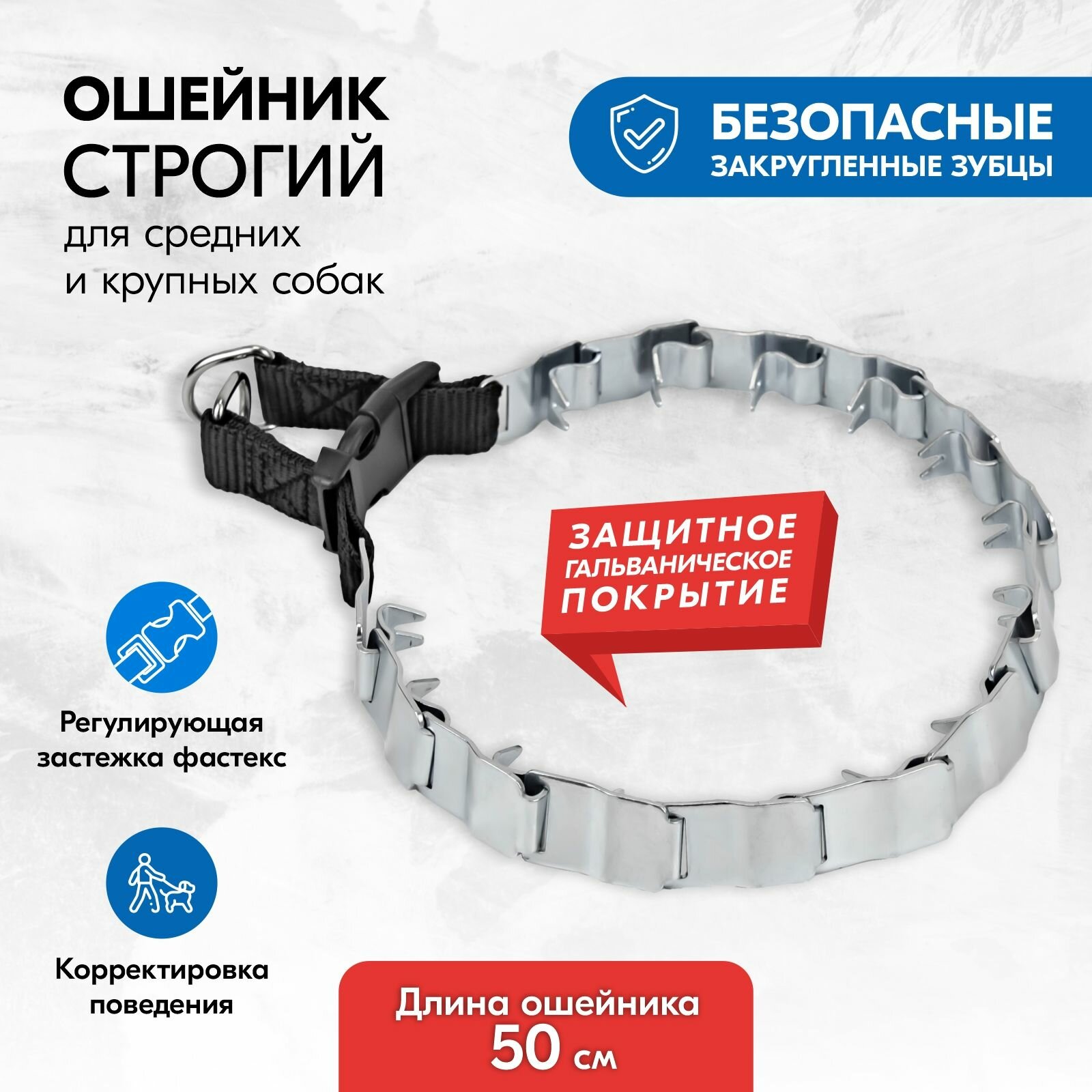 Ошейник строгий классика для собак "PetTails" пластинчатый с фастексом, 50см*22мм*1,5мм, цинк информация:
