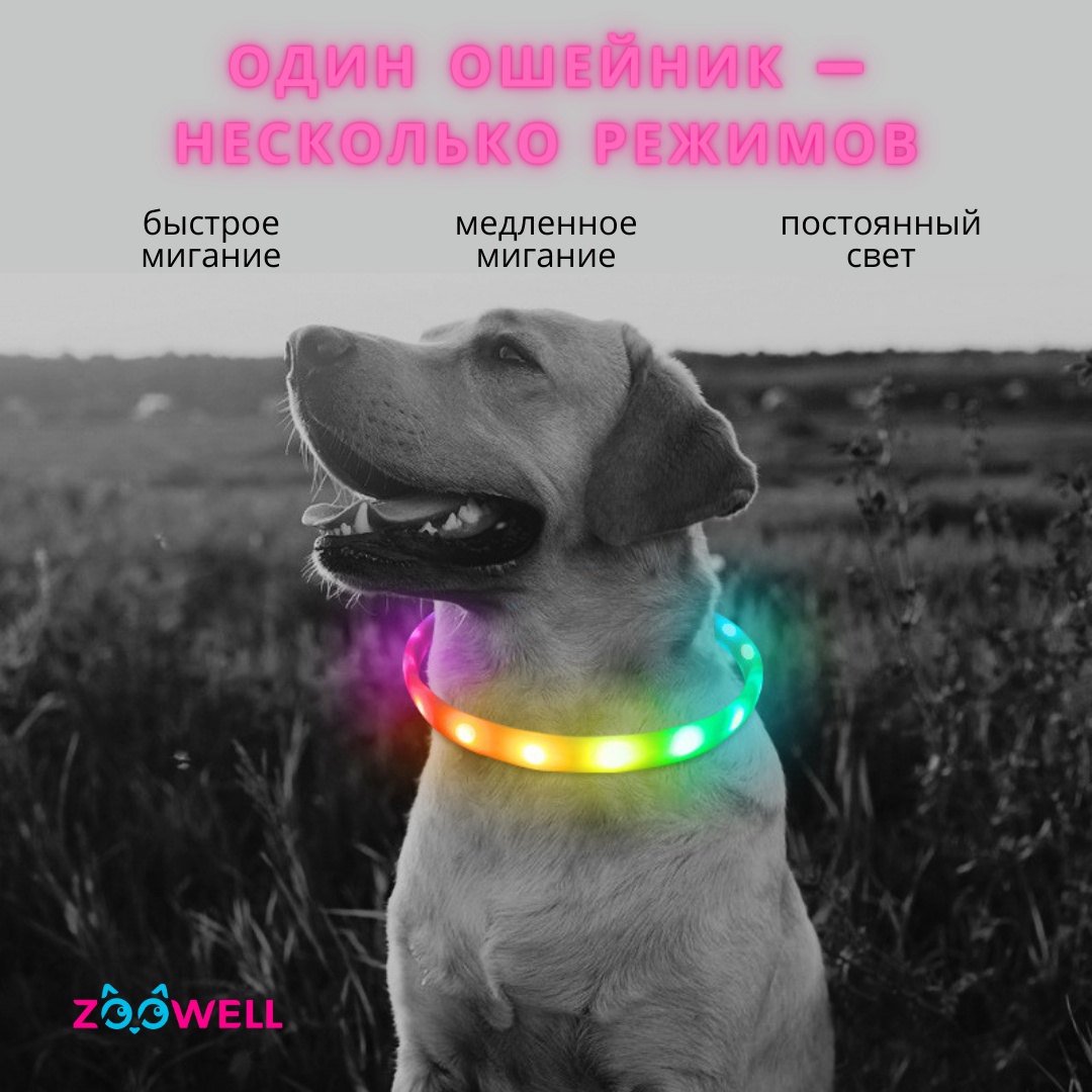Ошейник светящийся для собак LED, 55см, для выгула в темное время суток ZOOWELL 849 ₽