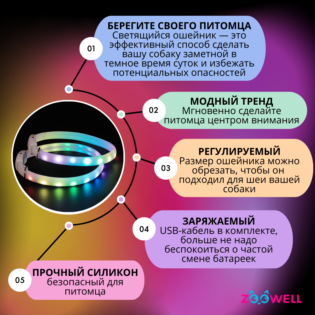 Ошейник светящийся для собак LED, 55см, ZOOWELL