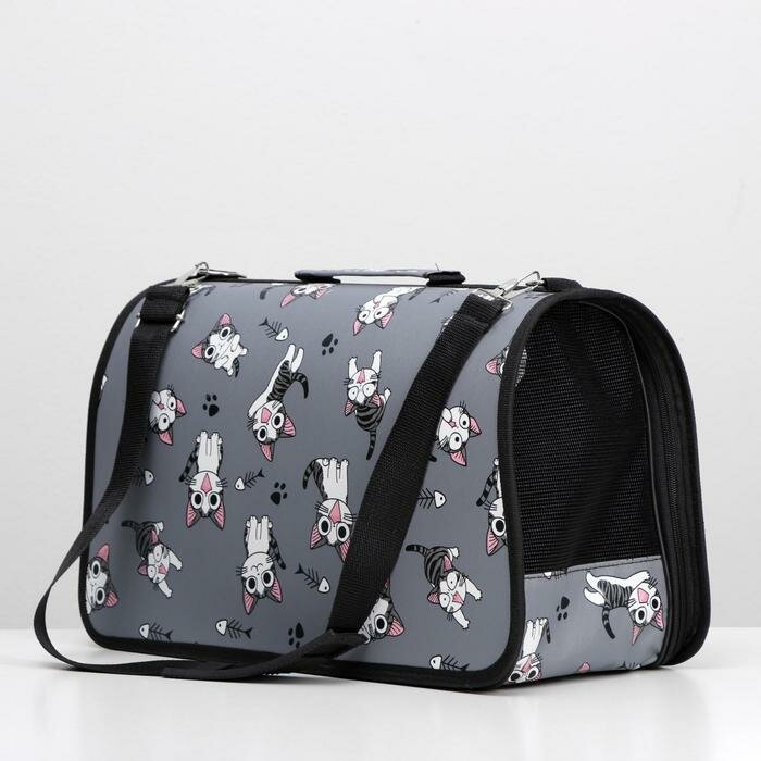 10 цен на Сумка-переноска каркасная "Играющие котики", размер M, 40 х 21 х 27 см, серая