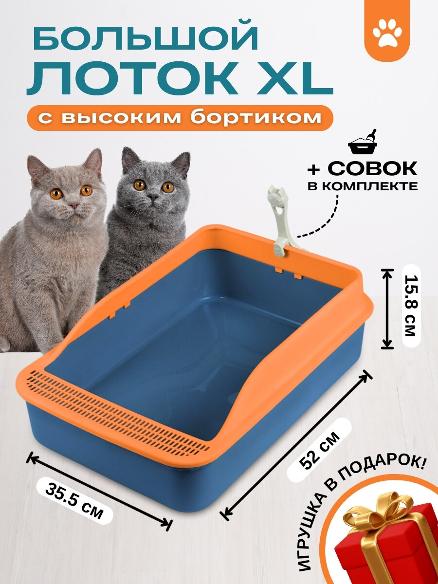 Большой лоток для кошек, собак с высокими бортами и лопаткой 50*37*20 см