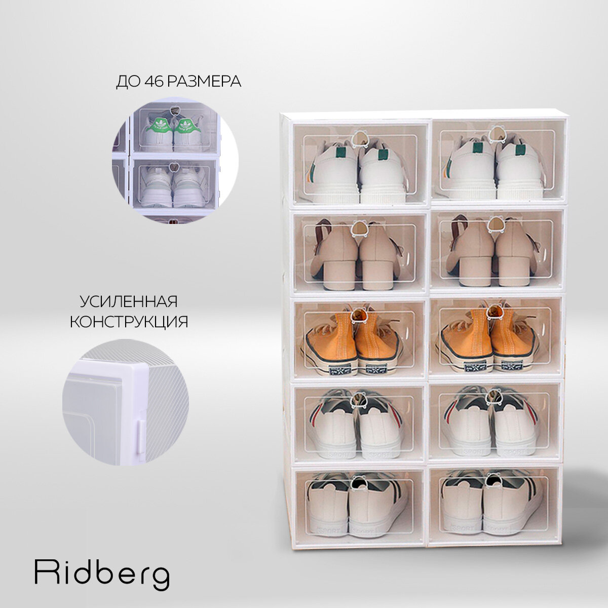 Коробки для хранения обуви Ridberg набор 10 шт, ящики для хранения вещей информация: