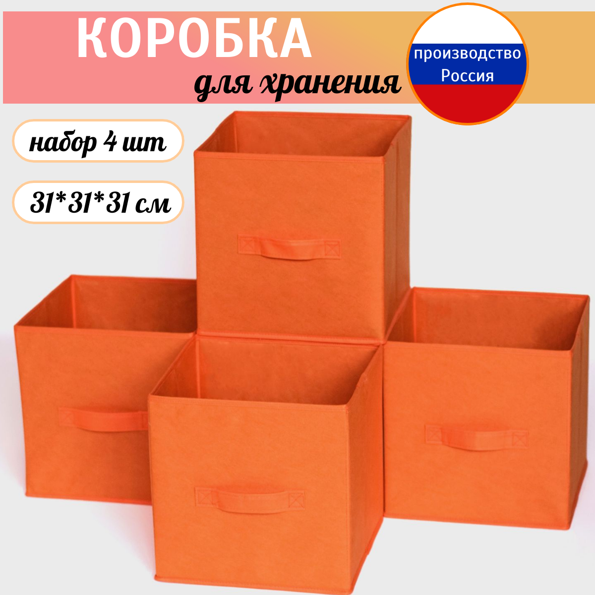 Короб для хранения стеллажный 31*31*31 см оранжевый. Набор из 4 штук информация: