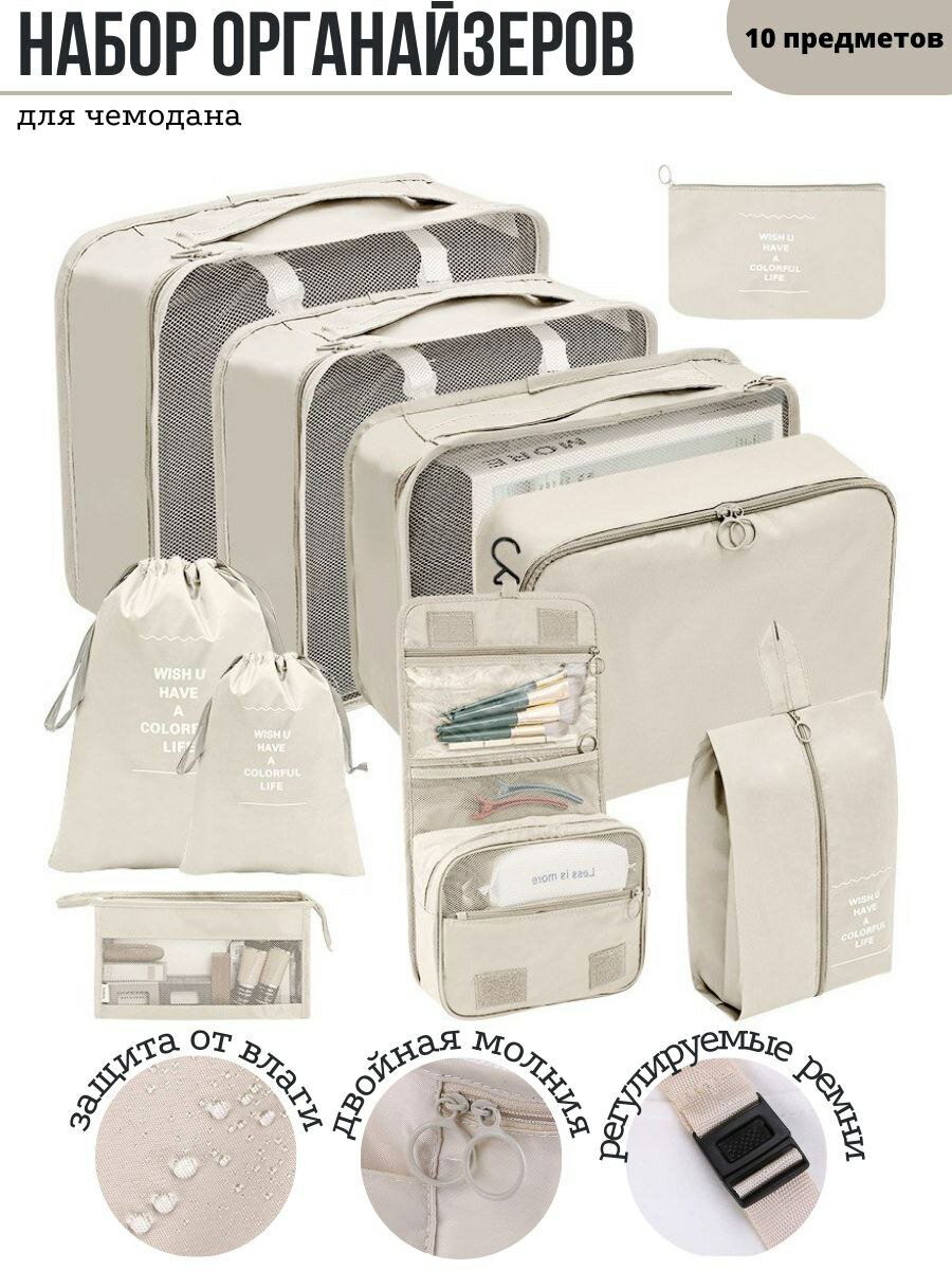 Дорожный набор/ Органайзер для хранения вещей в чемодане бежевый 10 шт. информация:
