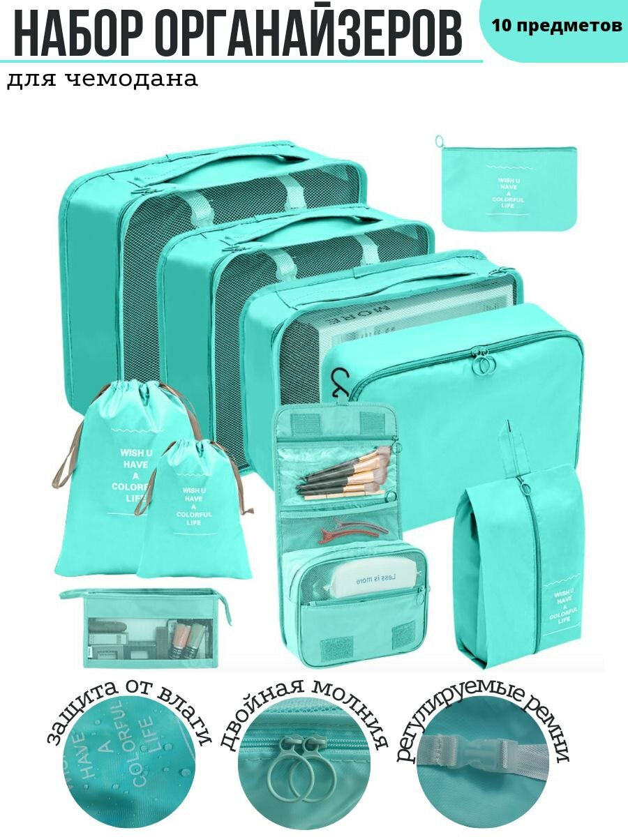 10 цен на Дорожный набор/ Органайзер для хранения вещей в чемодане яркий тиффани 10 шт.