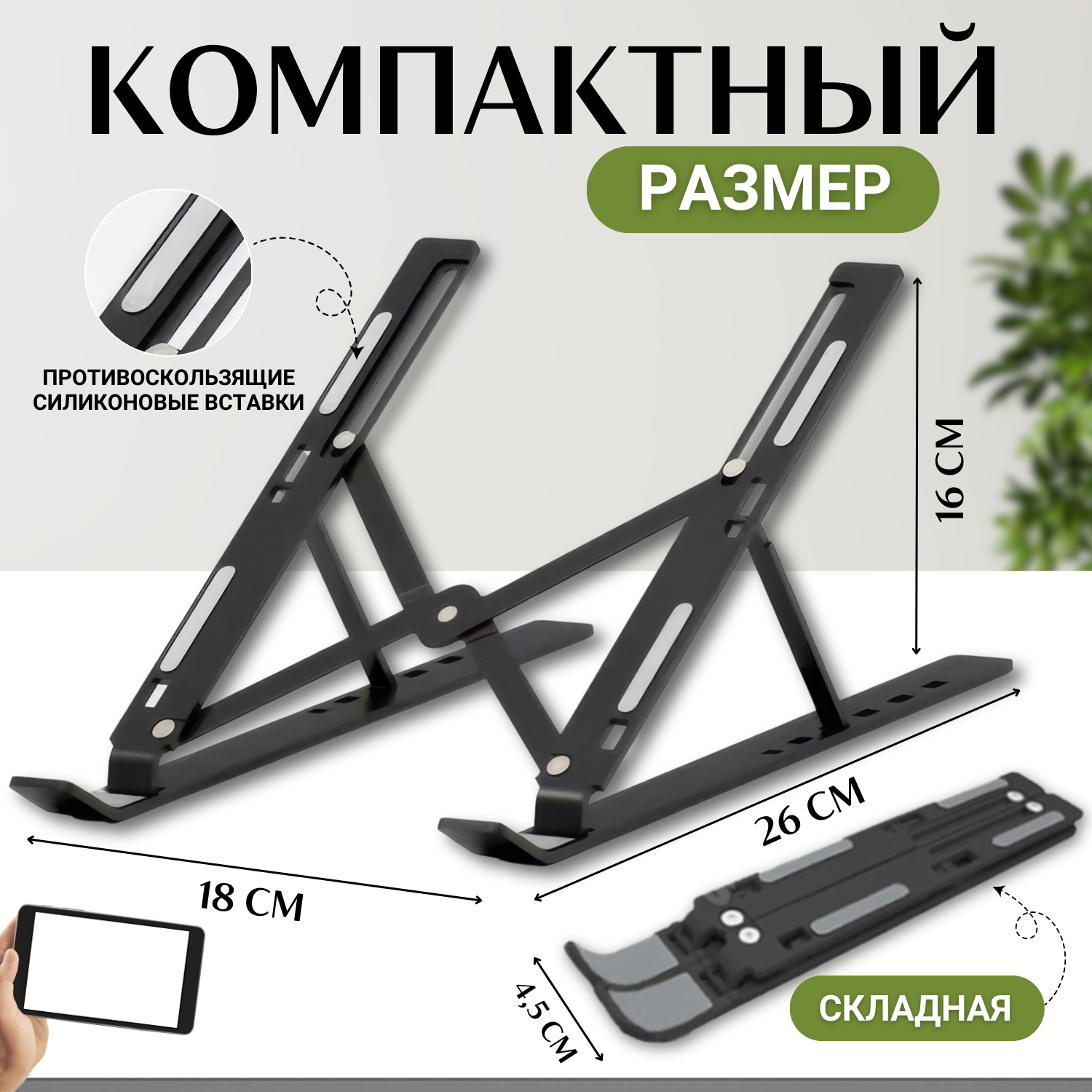 Регулируемая складная подставка для ноутбука с держателем для телефона