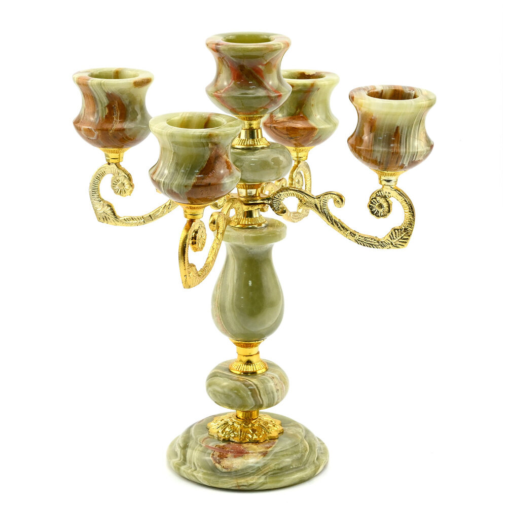 Канделябр из камня оникс 5-ти рожковый 220*220*280мм. РадугаКамня информация: