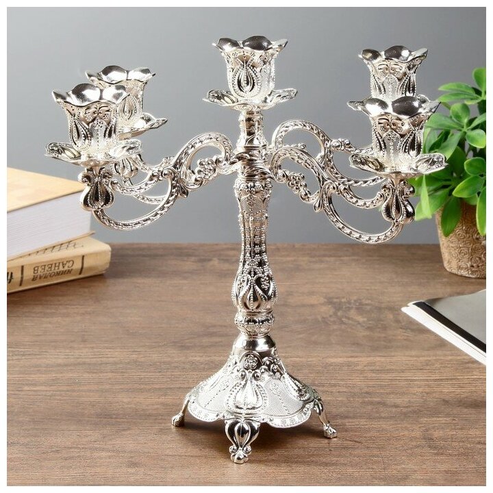 10 цен на Подсвечник металл на 5 свечей "Узорный" цвет серебро 28х26х26 см