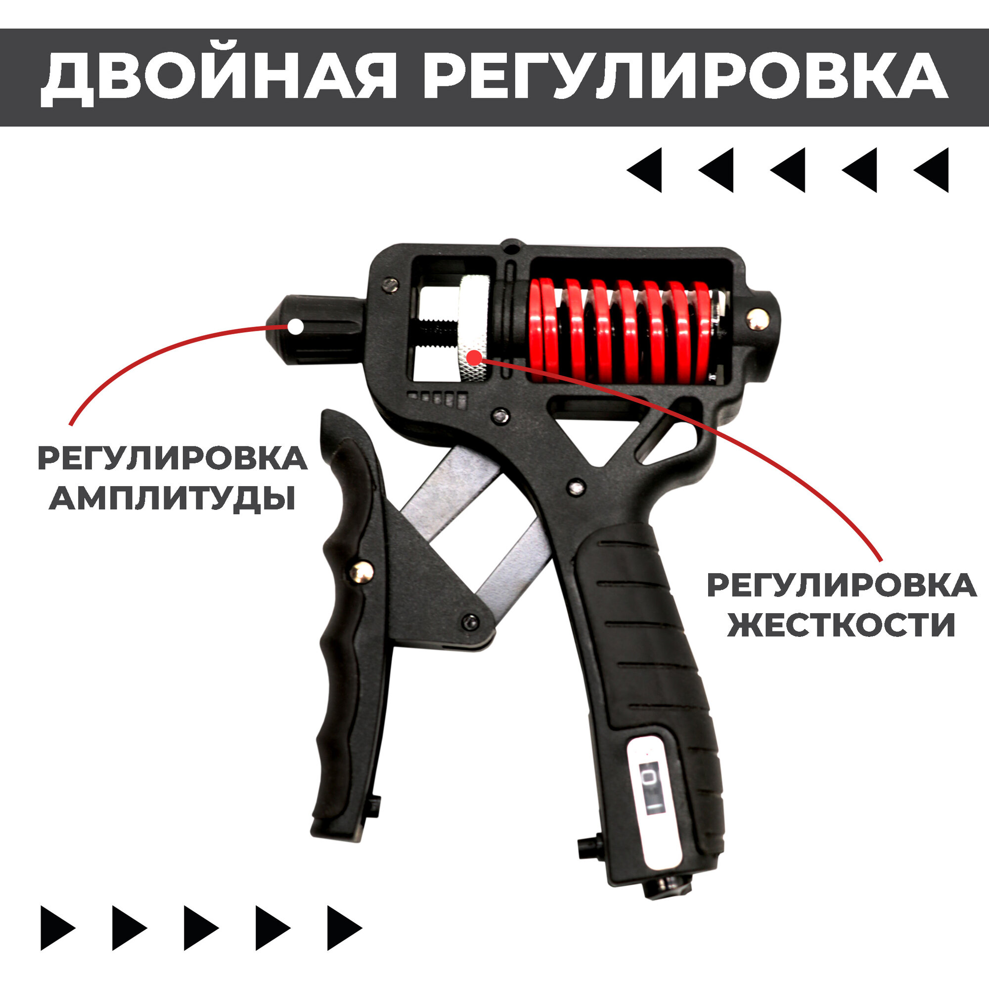 Эспандер кистевой с регулировкой нагрузки Boomshakalaka , со счетчиком, нагрузка 5-60 кг, цвет черный