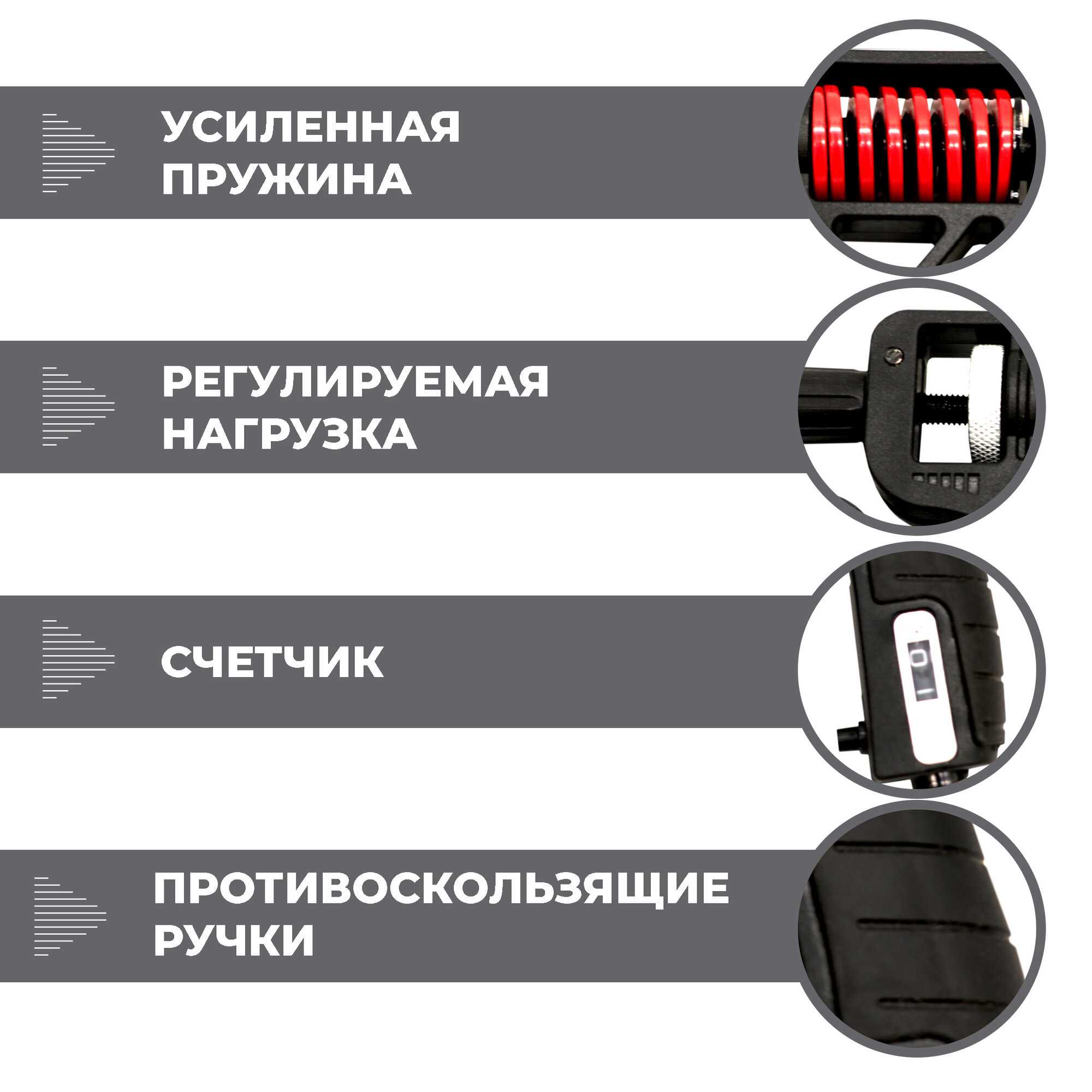 Эспандер кистевой с регулировкой нагрузки Boomshakalaka , со счетчиком, нагрузка 5-165 кг, цвет черно-красный информация: