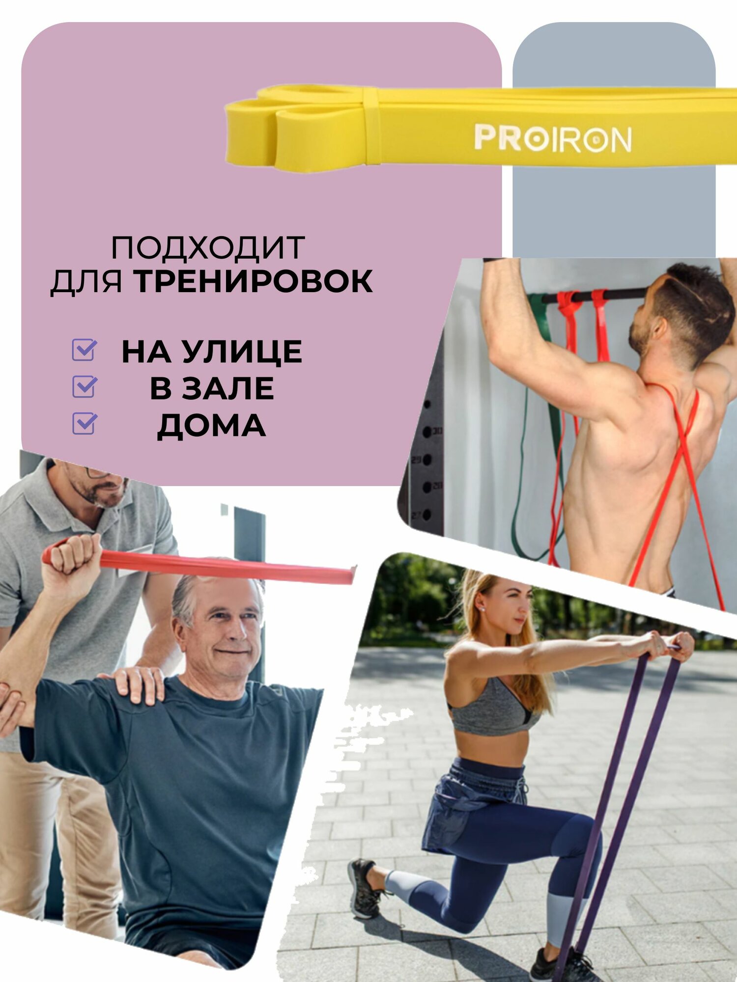 Отзывы на Резинка для фитнеса, PROIRON, нагрузка 18-31 кг, 2080х22х4,5 мм, желтый