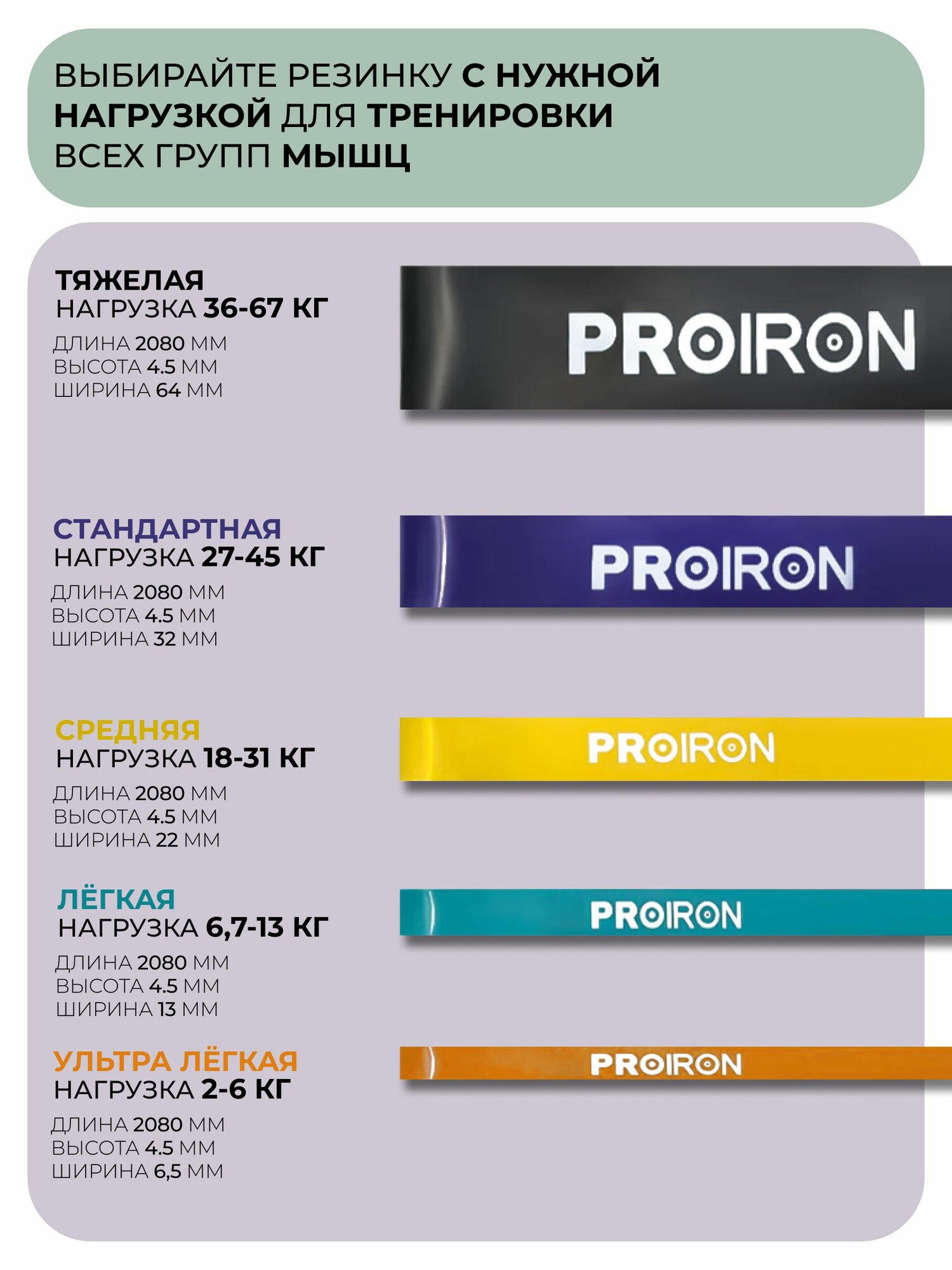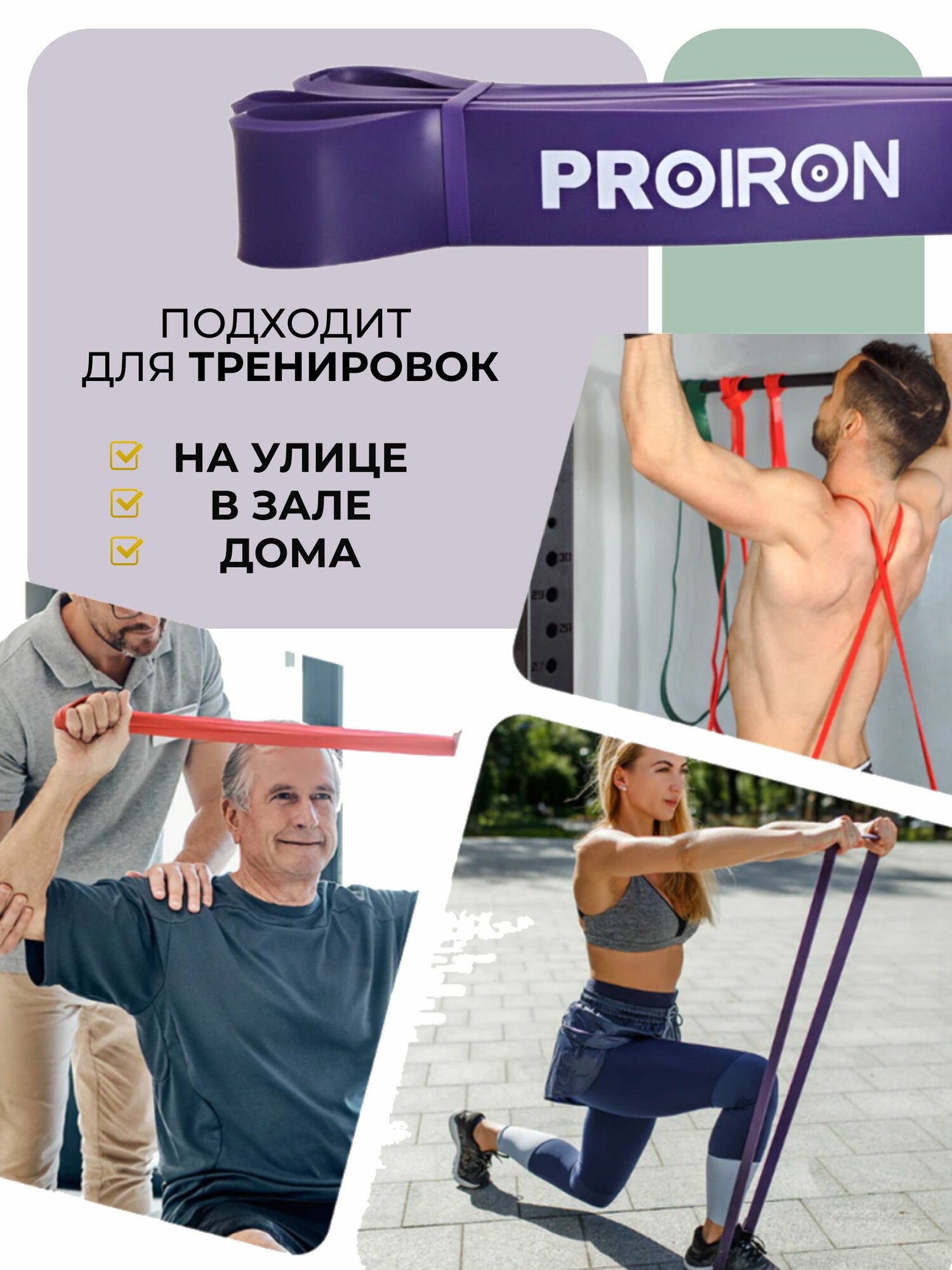 Отзывы на Резинка для фитнеса, PROIRON, нагрузка 27-45 кг, 2080х35х4,5 мм, фиолетовый
