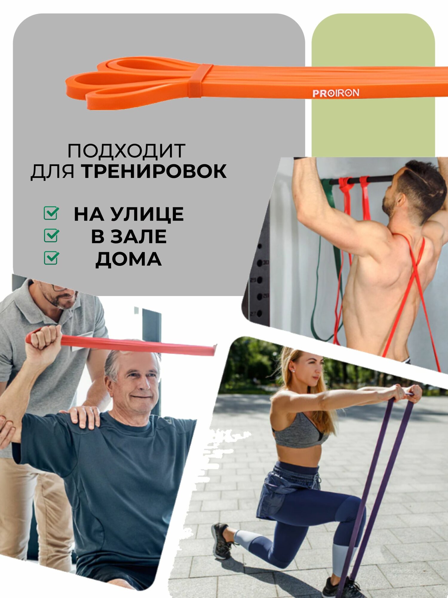 Отзывы на Резинка для фитнеса, PROIRON, нагрузка 2-6 кг, 2080х6,5х4,5 мм, оранжевый
