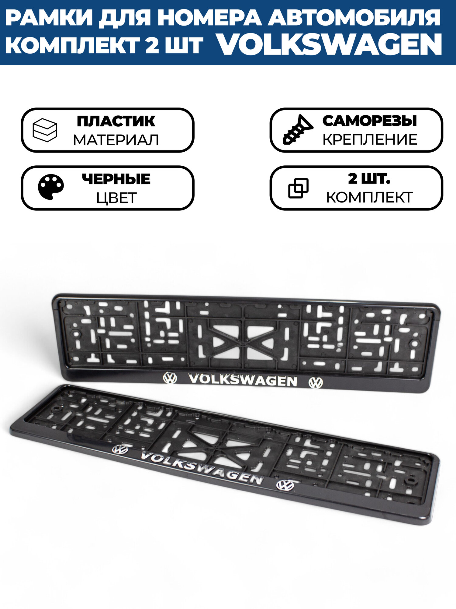 Рамка номерная универсальная с объёмной надписью VOLKSWAGEN, комплект 2 шт. информация: