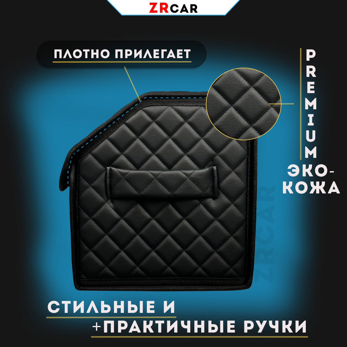 Саквояж в багажник автомобильный эко кожа черная синий ромб, объем 45 л