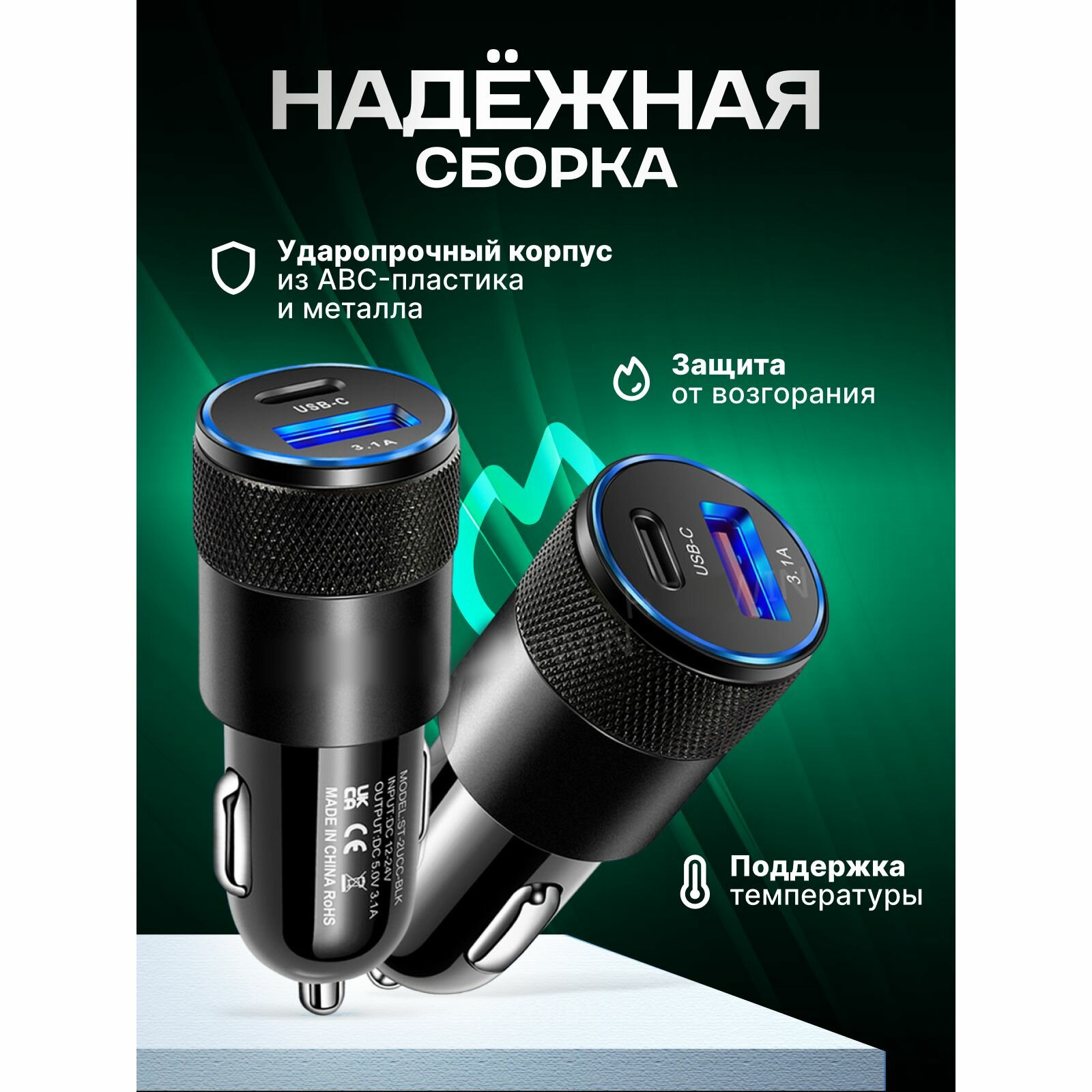 Разветвитель прикуривателя быстрая зарядка USB+Type C информация: