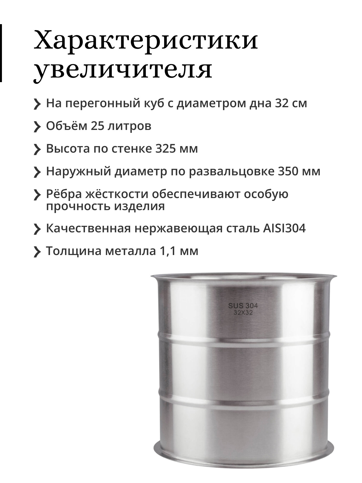 10 цен на Увеличитель с рёбрами жёсткости 25 литров (32×32) на перегонный куб с диаметром дна 32 см