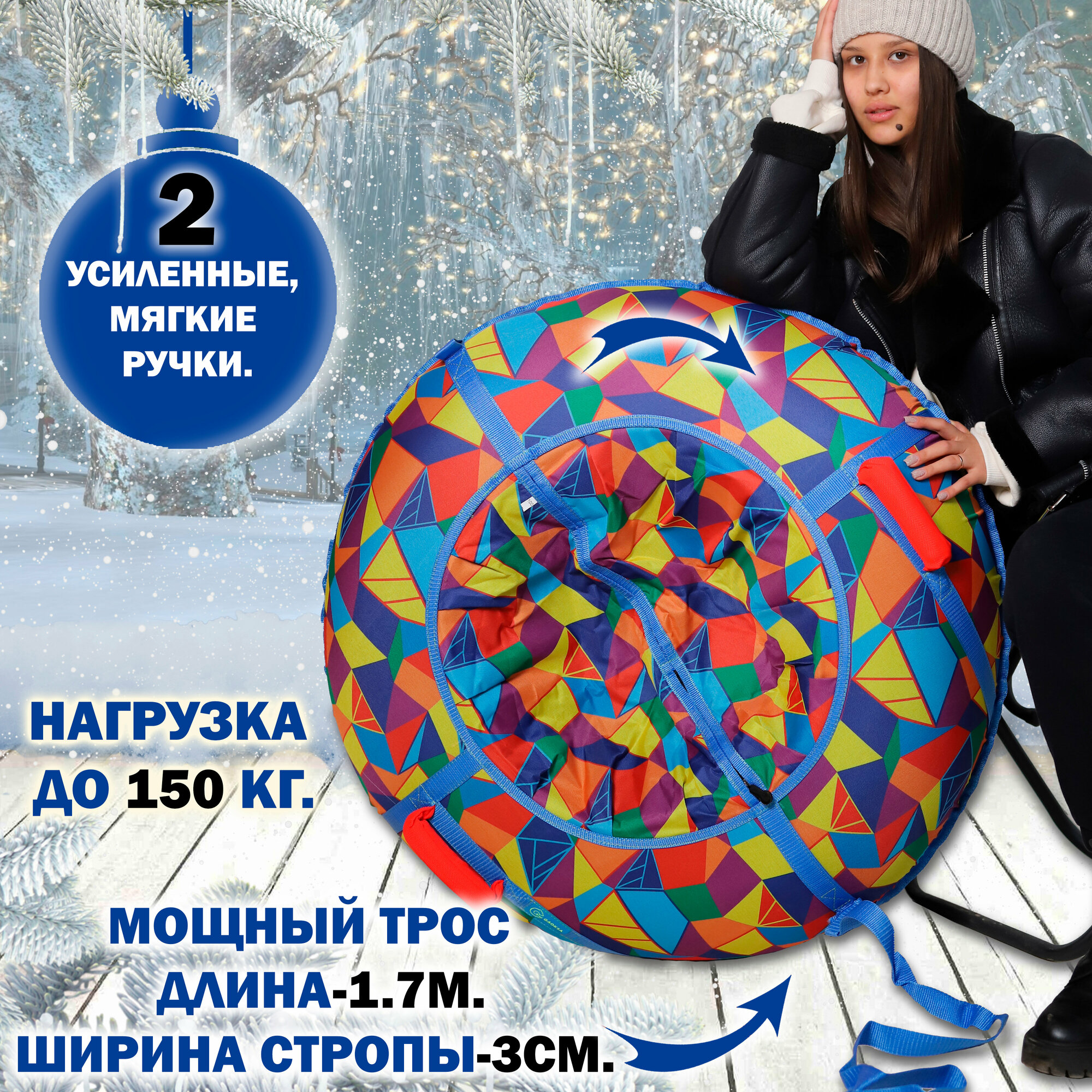 Отзывы на Тюбинг ватрушка 100 см с ручками и буксировочным тросом GAOKSA / Гаокса, санки детские для катания с горок геометрия