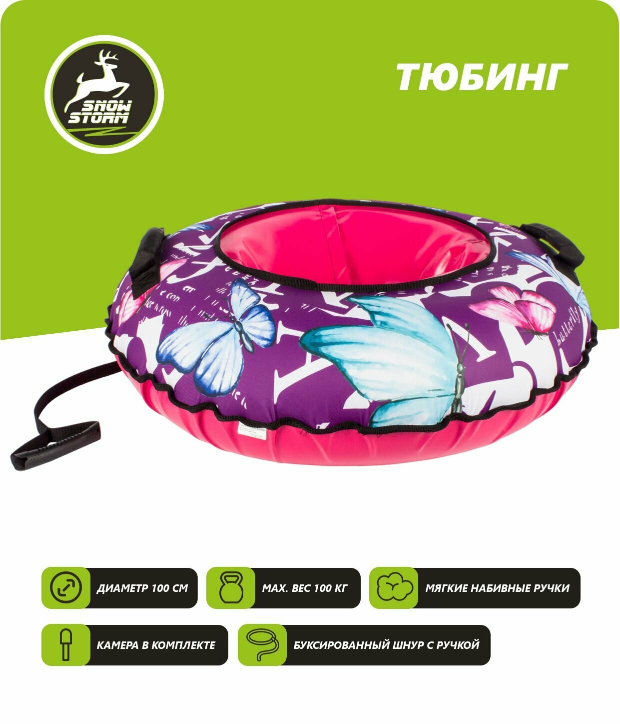 Тюбинг - ватрушка Snowstorm модель BZ-100_BUTTERFLY, 100 см, фиолетовый с розовым информация: