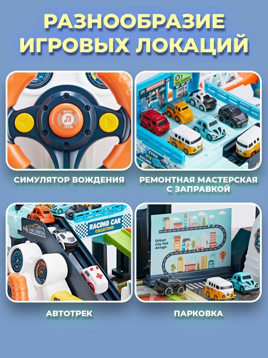 10 цен на Парковка для машинок многоуровневая WiMi с музыкальным рулем, Гараж детский с горкой, Игровой набор, Паркинг